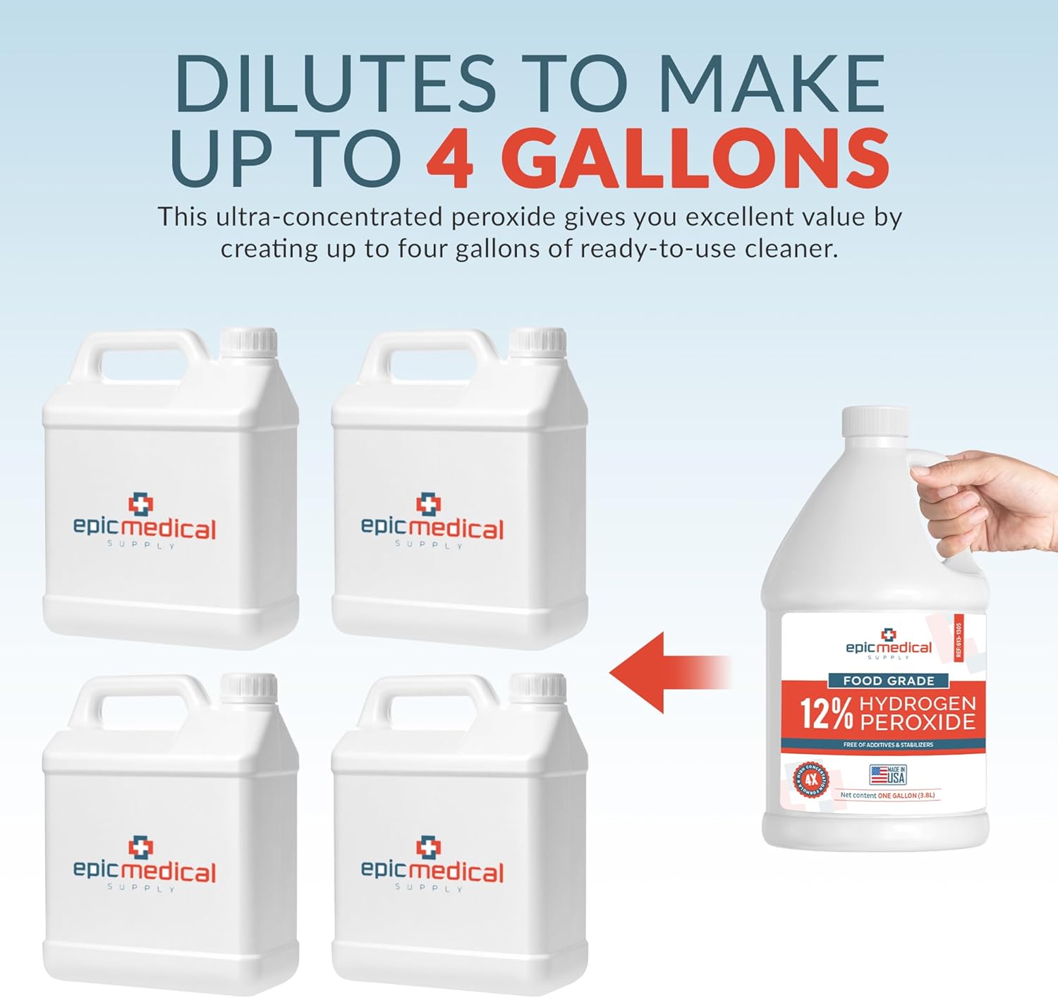 12% Food Grade Hydrogen Peroxide – Ultra-Concentrated H2O2 Peroxide Cleaner – 1 Gallon Bottle – Bleach Alternative for Household Cleaning, Laundry, Glass & More – Made in USA (4)