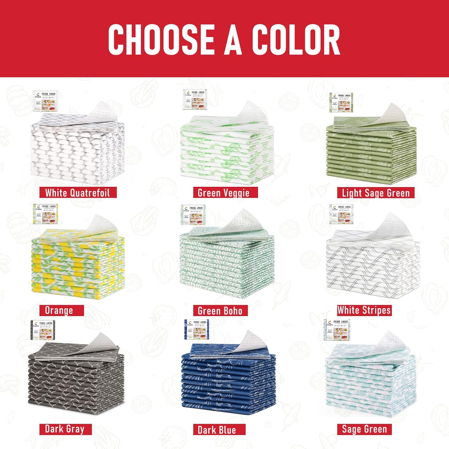 • Absorb Spills: Liners keep veggies fresh by absorbing excess moisture from them when they are stored in refrigerator bin drawers, shelves, crispers, or cabinets; A good way to arrange your refrigerator bins