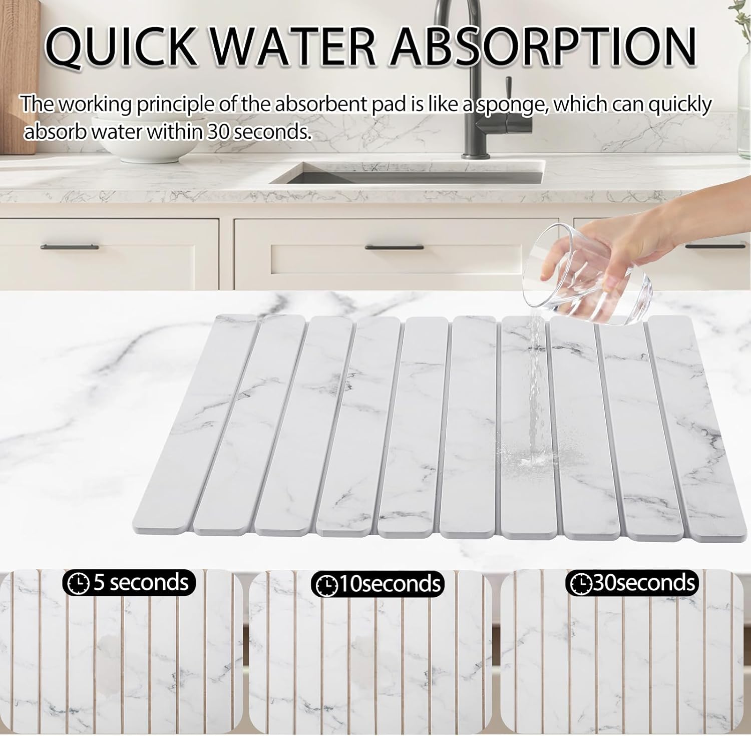 • Super-Absorbent Stone Drying Mat:Deep grooves instantly capture moisture 3X faster than rubber mats keeping kitchen counter dry and spot-free within minutes