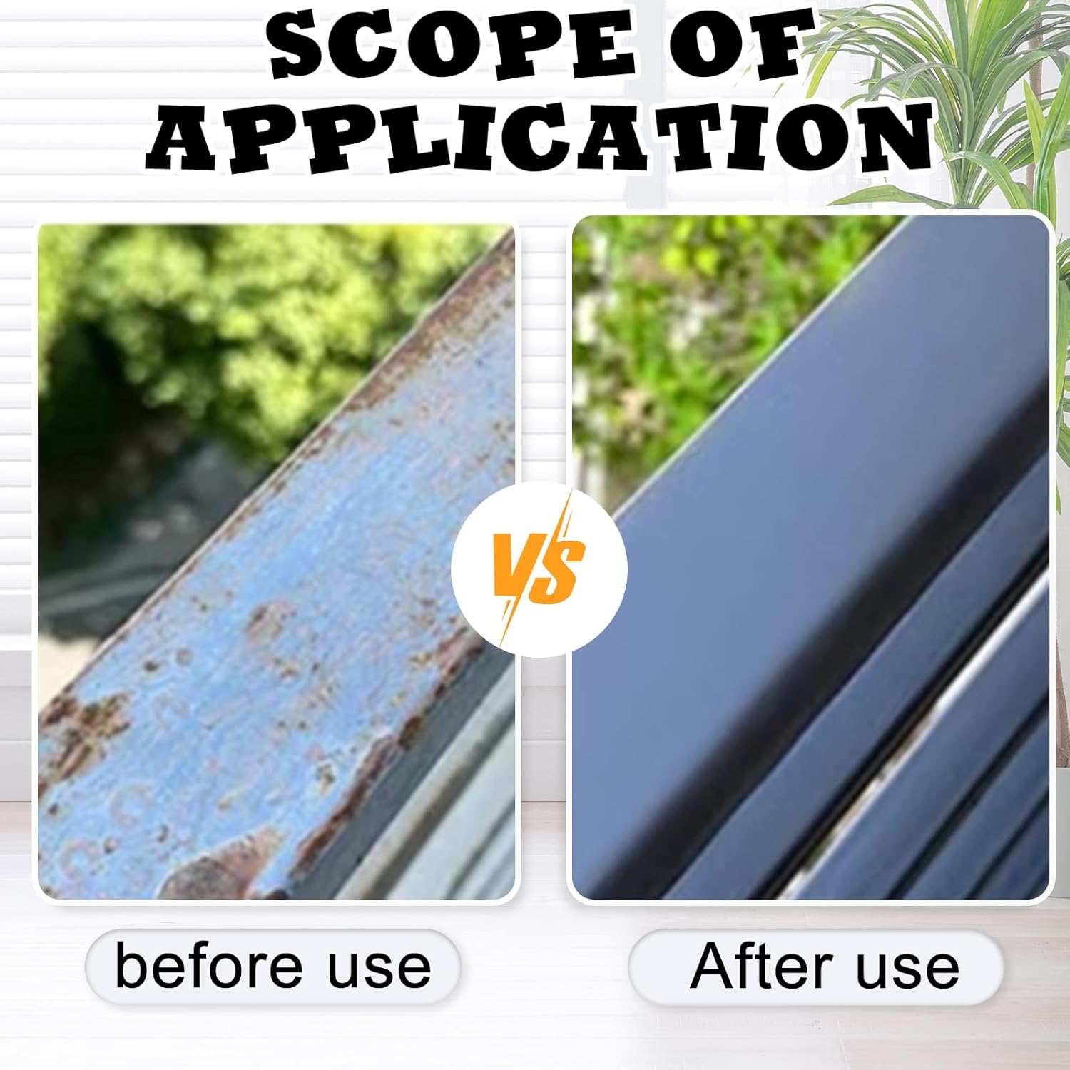 Weatherproof Rust Converter Paint for Metal, Rust Remover for Metal and Primer, Water-Based Industrial Anti-Rust Metallic Paint with Brush, Long-Lasting Rust Prevention & Protection, 10.7 Oz (Black)