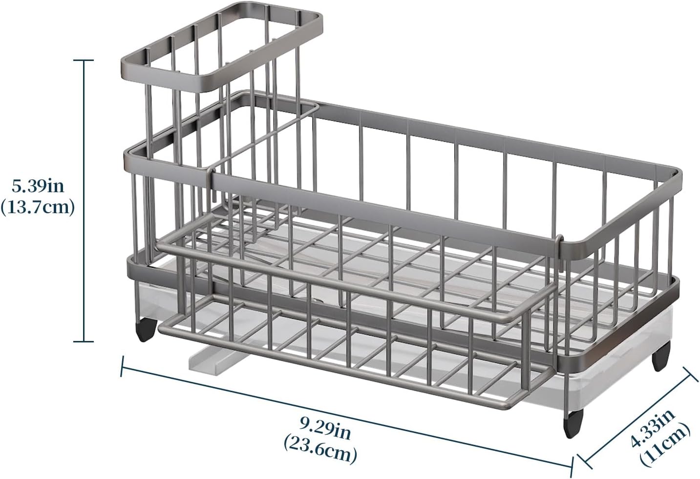 - [Generous Storage Capacity]: This sink organizer is 5.39*9.29*4.33 inches, it can accommodates high brush holder, dish soap dispenser, sink stoppers, and more in one compact space. with the Consumest sink caddy kitchen sink organizer you can save countertop space perfectly