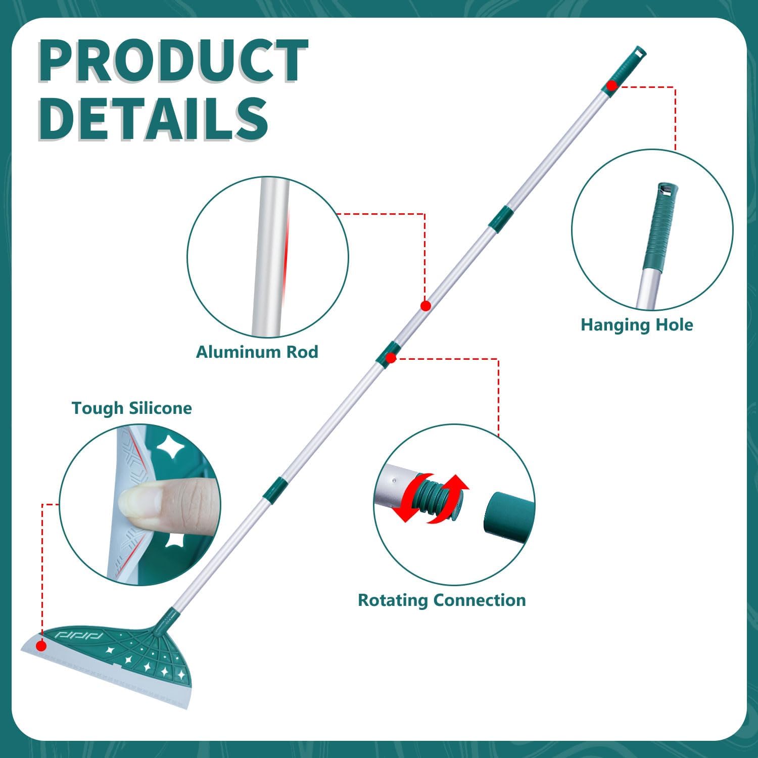 • Excellent Customer Support: This durable, convenient squeegee broom for aluminum poles comes with a lifetime warranty, we are so confident in our product that you can always contact us after-sale for a replacement if there is a problem