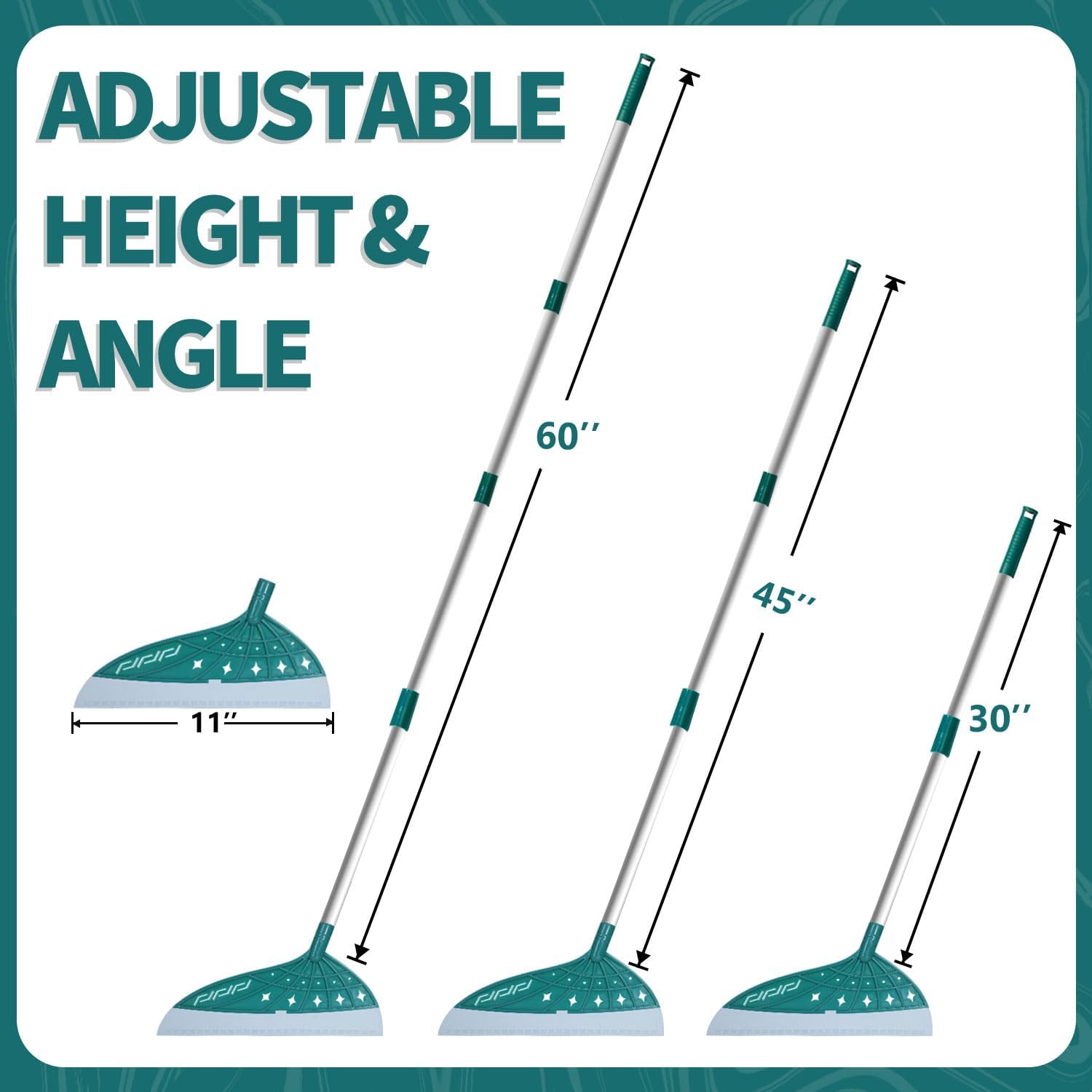 • Adjustable Length: According to usage needs, the pole length can be adjusted to 30’’-45’’-60’’. Different lengths can handle cleaning floors, wiping car windows, and dealing with countertop debris. The aerospace-grade aluminum material adopts a thickened design for more stability and durability