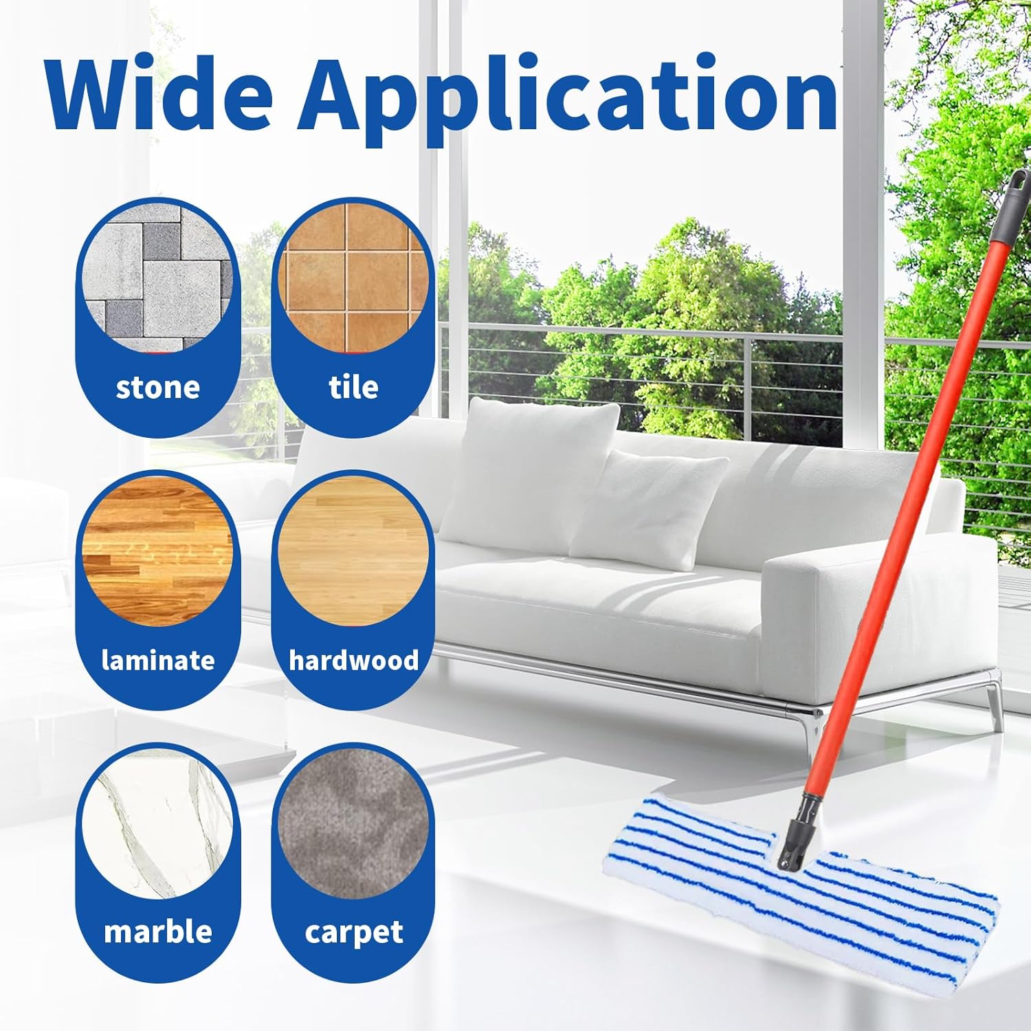 • Wide Application: Dust mop pad refills are suitable for using on all types of hard floor surfaces in homes, work, schools and much more. Size of Mop Pad-Length 18.5in, Width 6in, Fits most 16" dust mops. You will get 4 pack mop replacement heads.