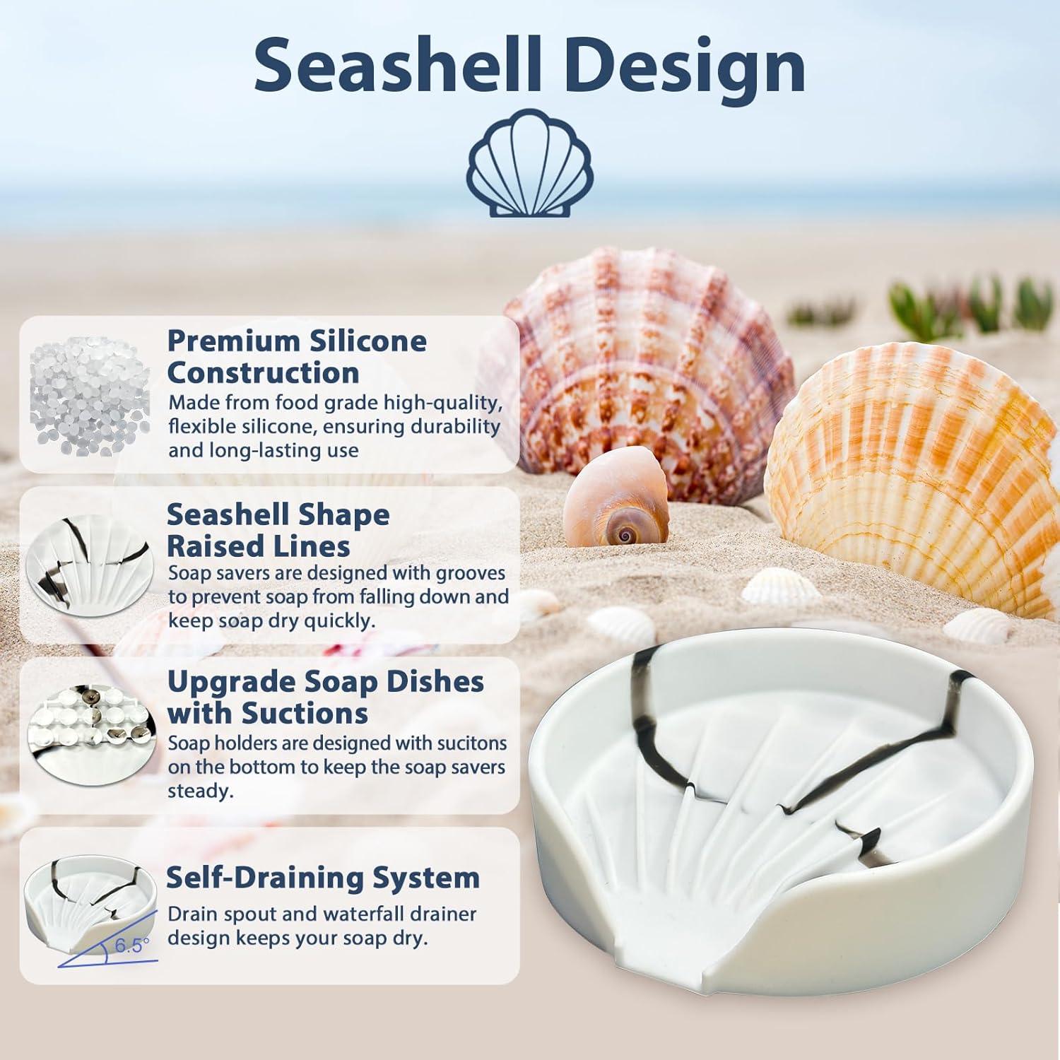 • Self Draining Soap Dish: The silicone shower soap dish is designed with an raised surface and a drain spout. It can automatically drain water into the sink, prevents soap from getting mushy and water from pooling on the countertop, keeping both clean