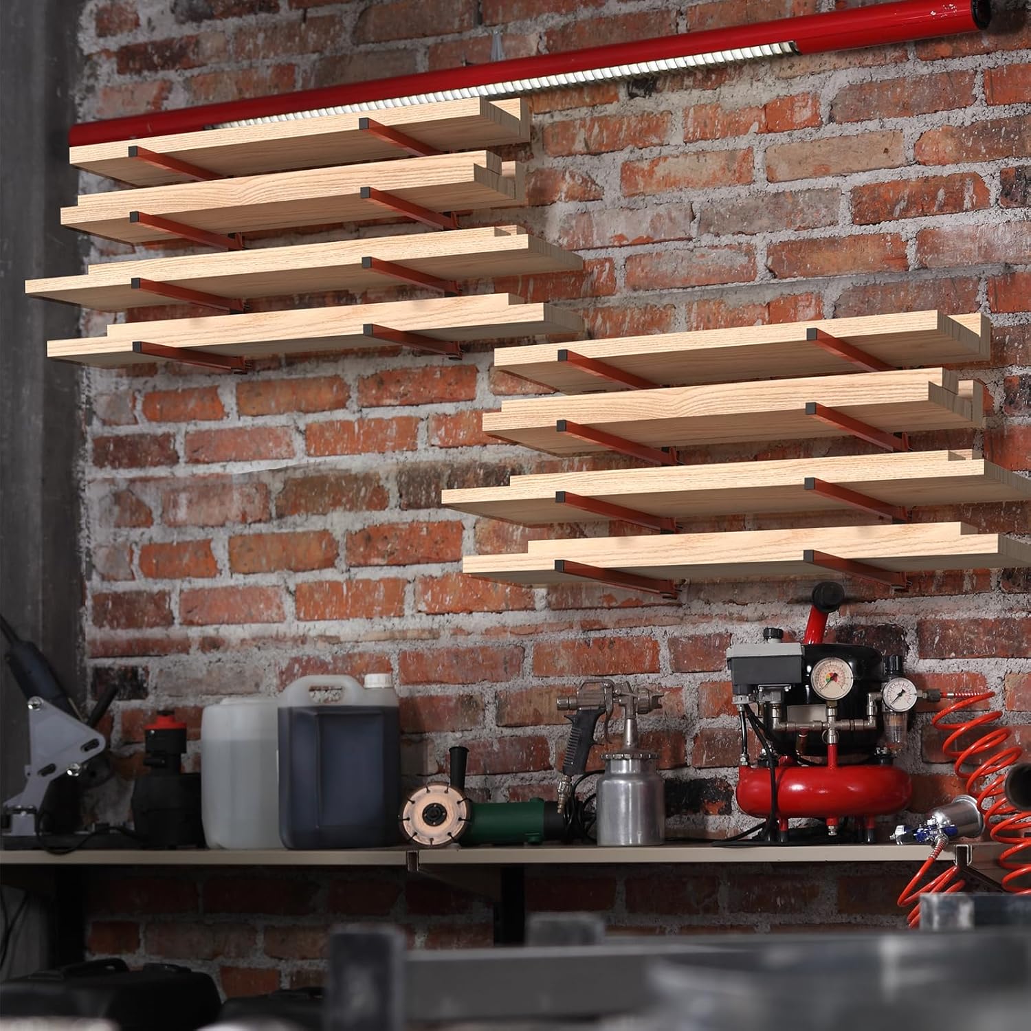 - Convenient and Space-Saving Storage Solution: The Utility Racks are designed to offer a reliable and compact storage option for organizing your wood, tools, and other items with ease. These wall-mounted racks provide both strength and convenience, making it a practical choice for keeping your belongings in order and easily accessible.