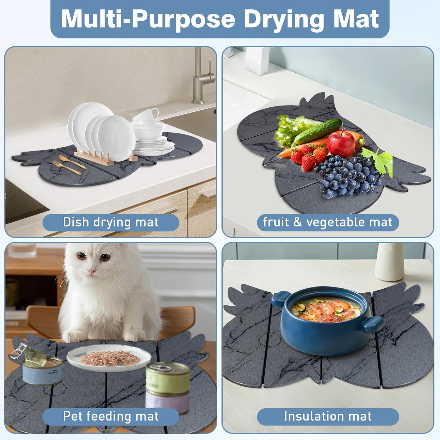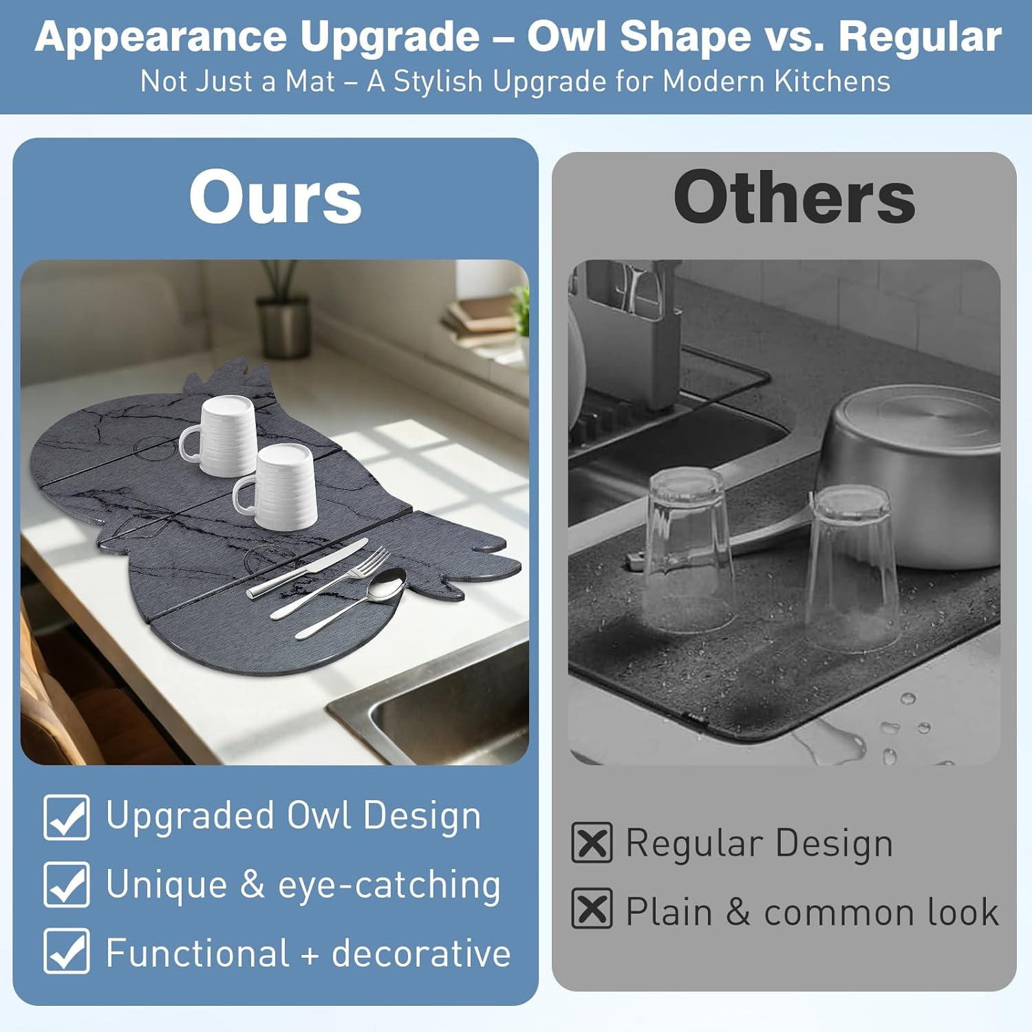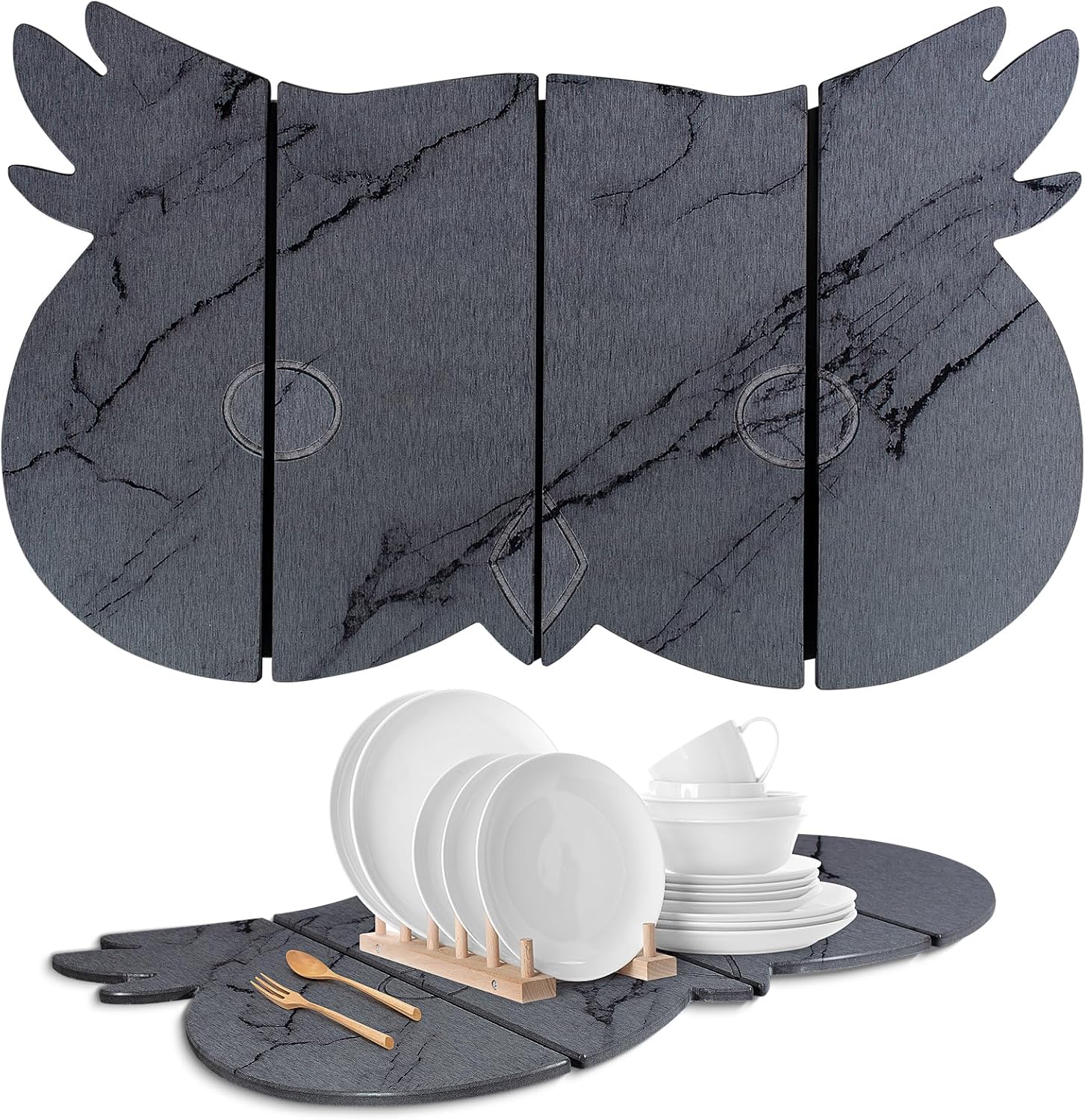 • 【Upgraded Owl Design with Elegant Marble Pattern】Stylish owl-shaped stone dish drying mat with a marble pattern adds a decorative and modern touch. Perfect upgrade for kitchens seeking both functionality and aesthetic appeal