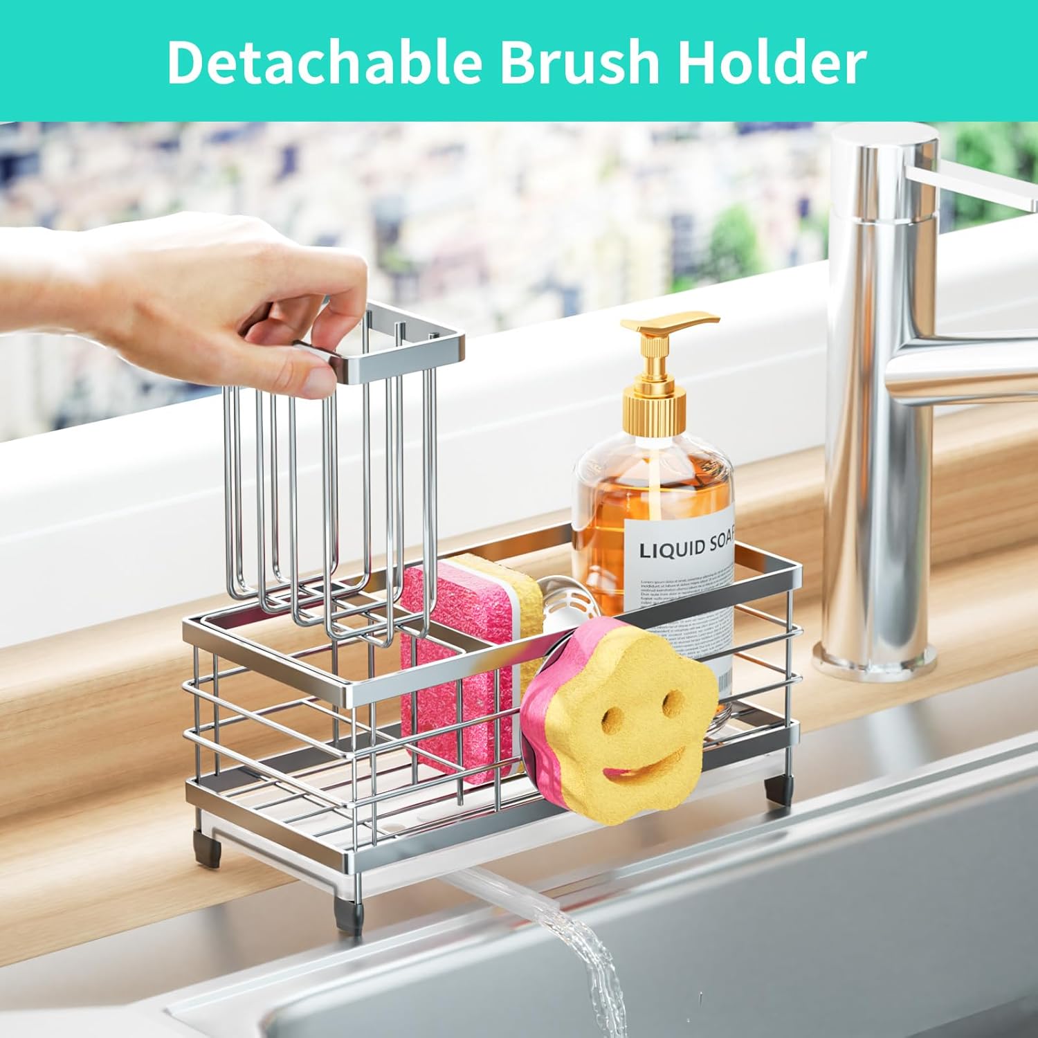 - [Detachable Brush Holder]: HapiRm sponge holder also comes with a removable brush holder, creating a dedicated spot for your dishwashing brushes. This kitchen caddy ensures a tidy kitchen and makes your cleaning tasks more efficient and organized