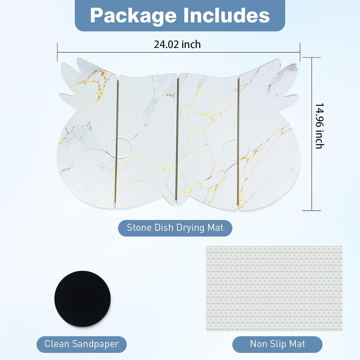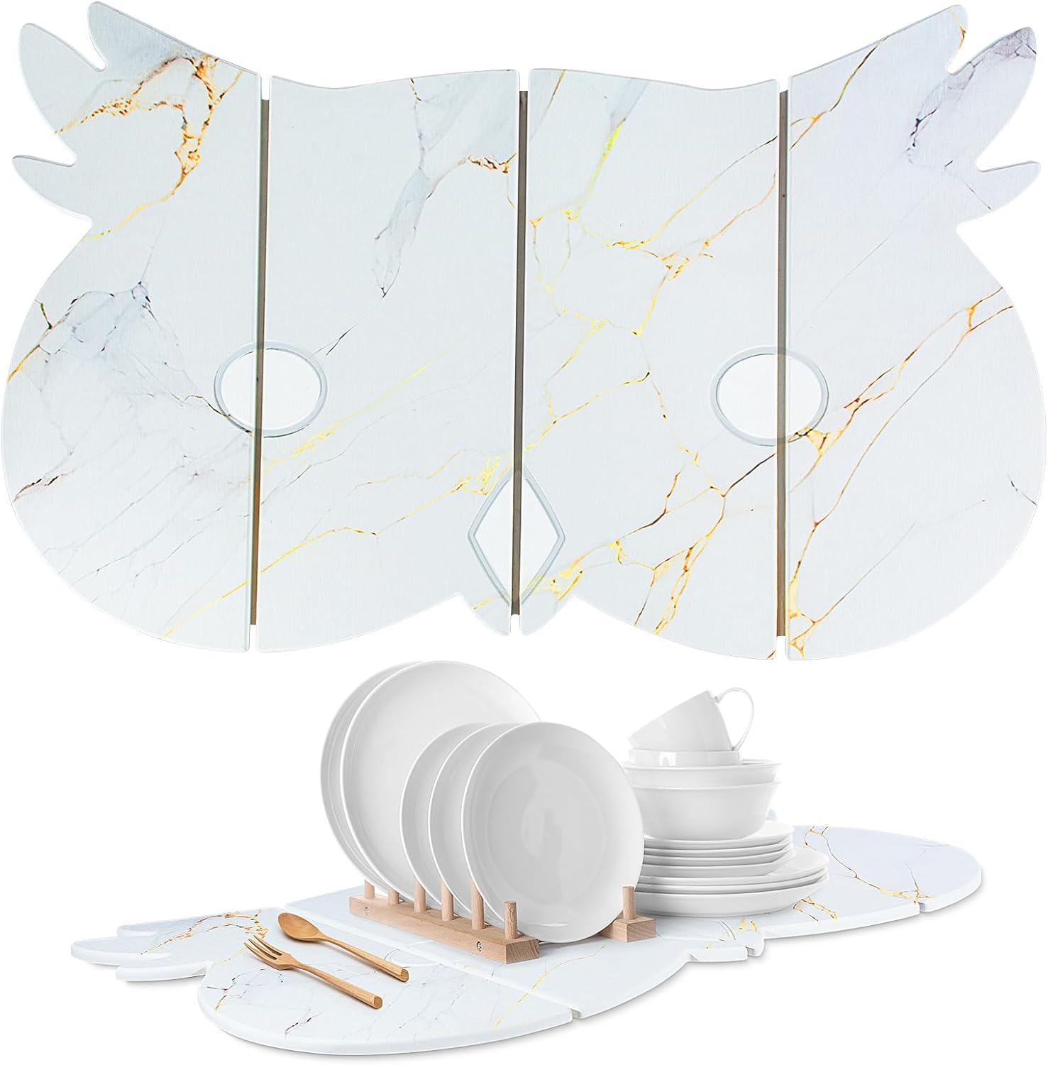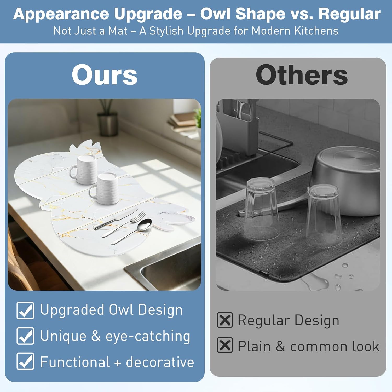 • 【Upgraded Owl Design with Elegant Marble Pattern】Stylish owl-shaped stone dish drying mat with a marble pattern adds a decorative and modern touch. Perfect upgrade for kitchens seeking both functionality and aesthetic appeal