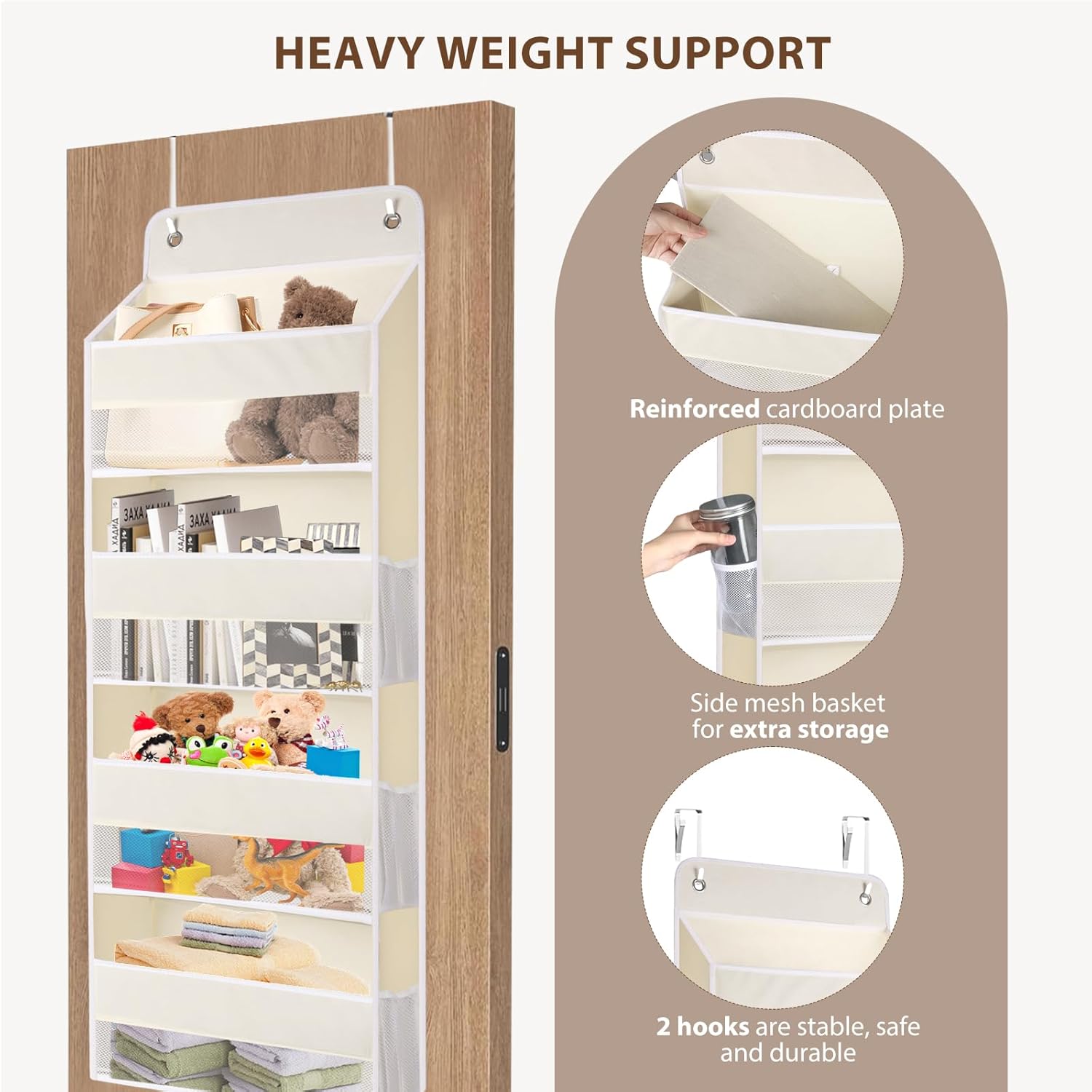- 35 LBS LARGE LOAD CAPACITY & SPACE SAVING: Making of non-woven fabric and featuring with 4 roomy pockets (up to 14.17" /36 cm long) and 6 additional mesh side pockets, this Over the Door Organizer Storage thoughtfully expands storage space, making it an ideal space maximizer for any room