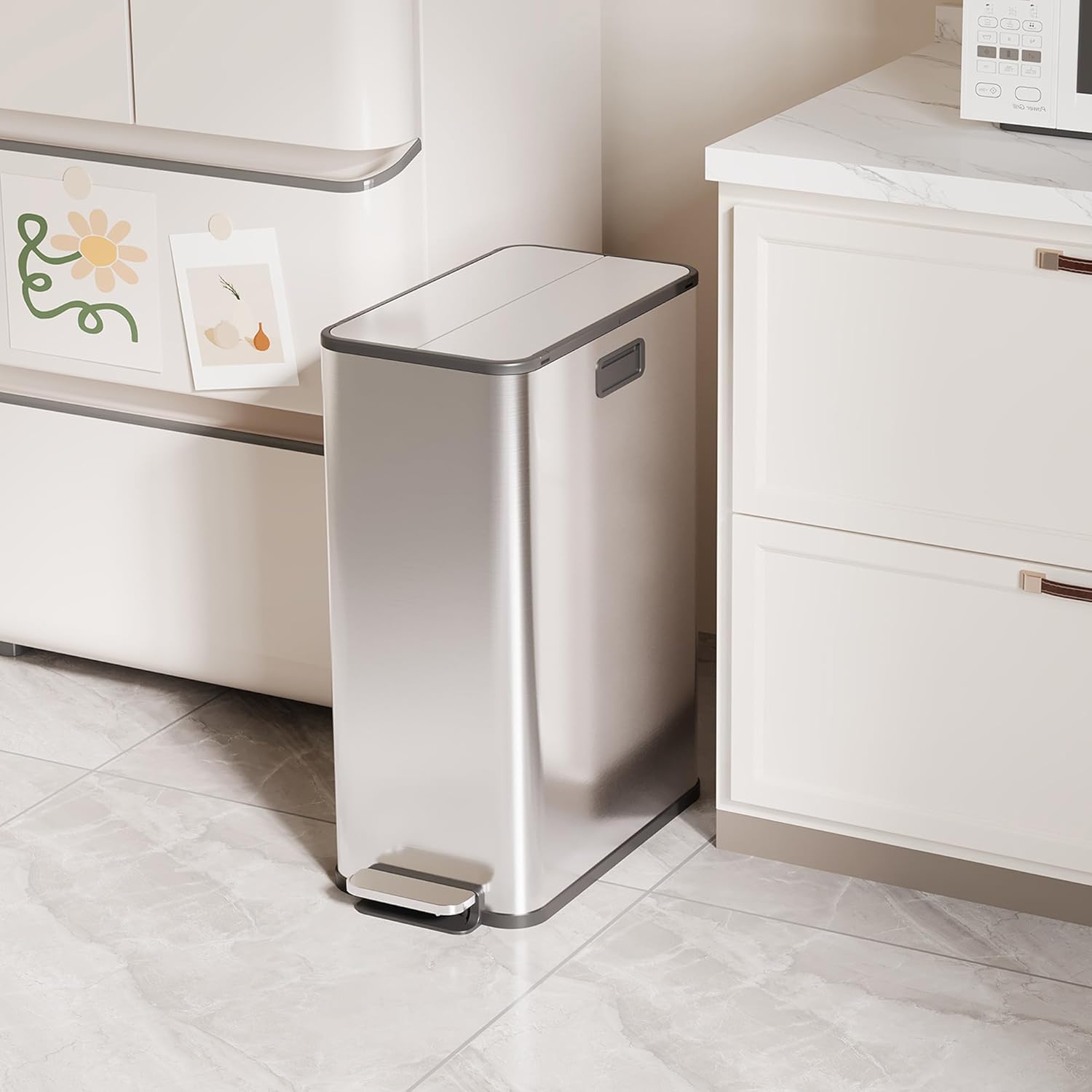 • Durable and Pet-Proof: Constructed from premium stainless steel, this durable bin features a sturdy pedal and fully sealed lid that prevent pets from opening it, ensuring your waste stays secure and out of reach.