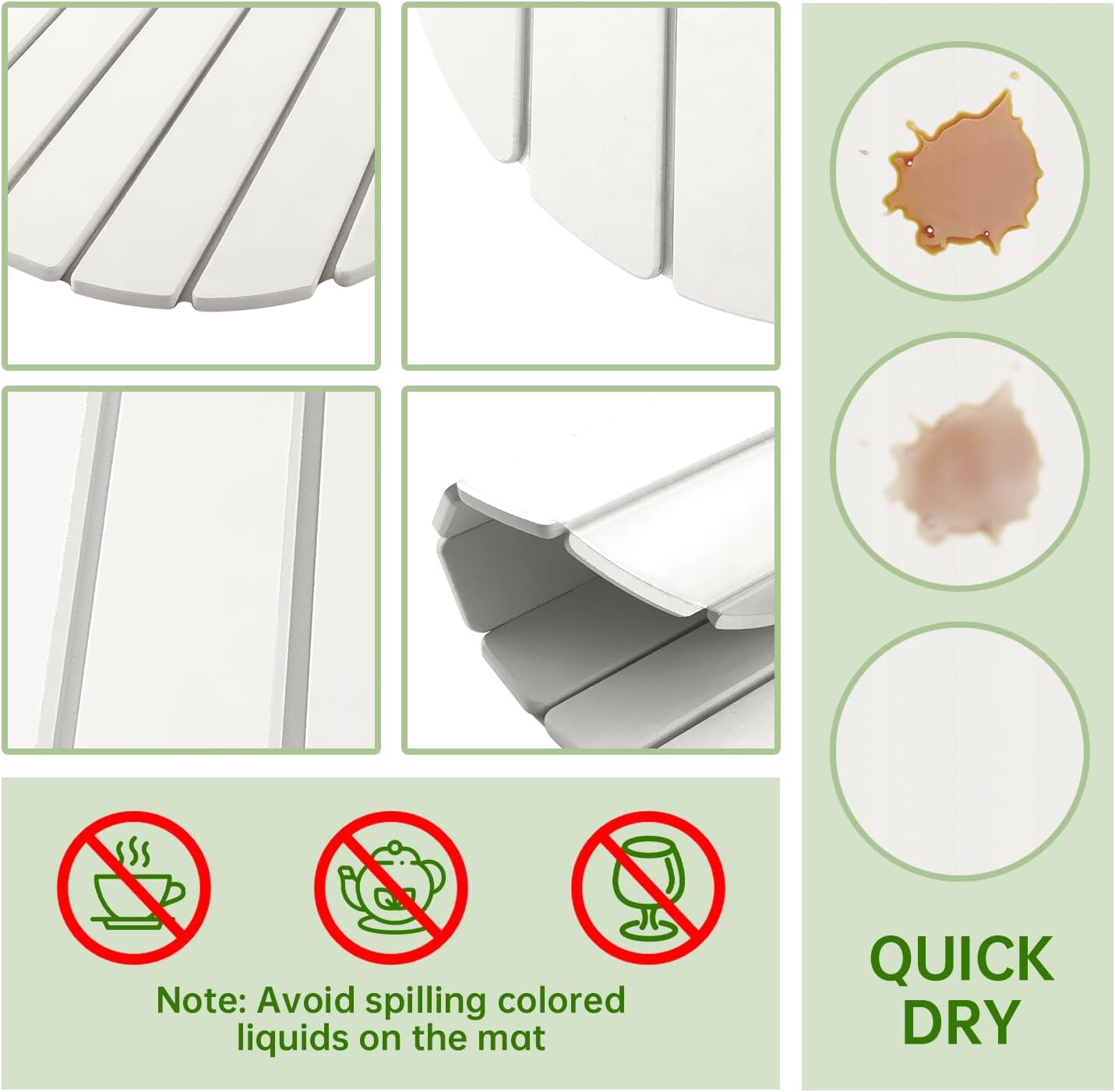 • Foldable and Space-Saving Design: The collapsible design allows quick dry stone mat kitchen to be conveniently rolled or folded for easy storage in drawers or cabinets, making stone drying mat for dishes an excellent space-saving solution for any home.