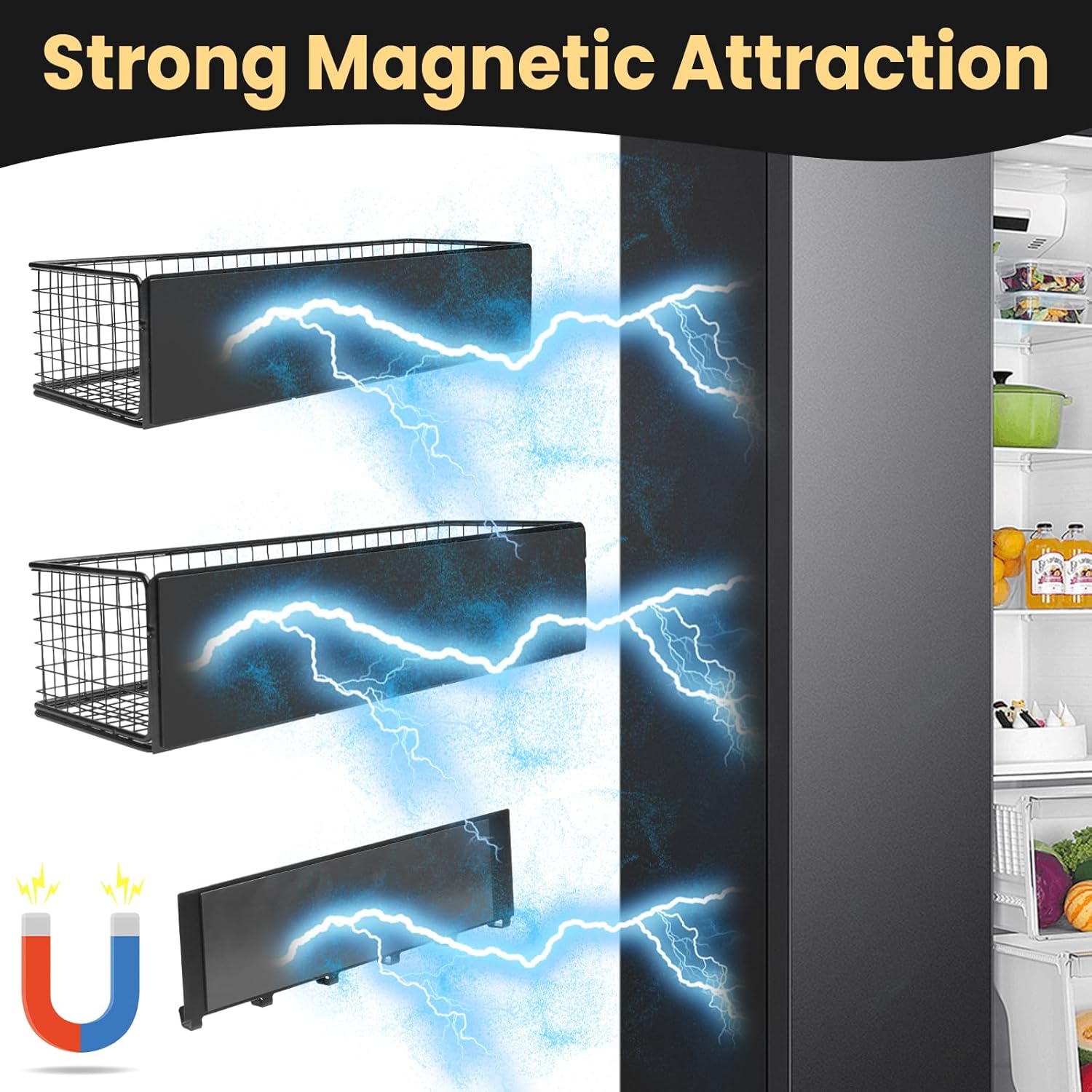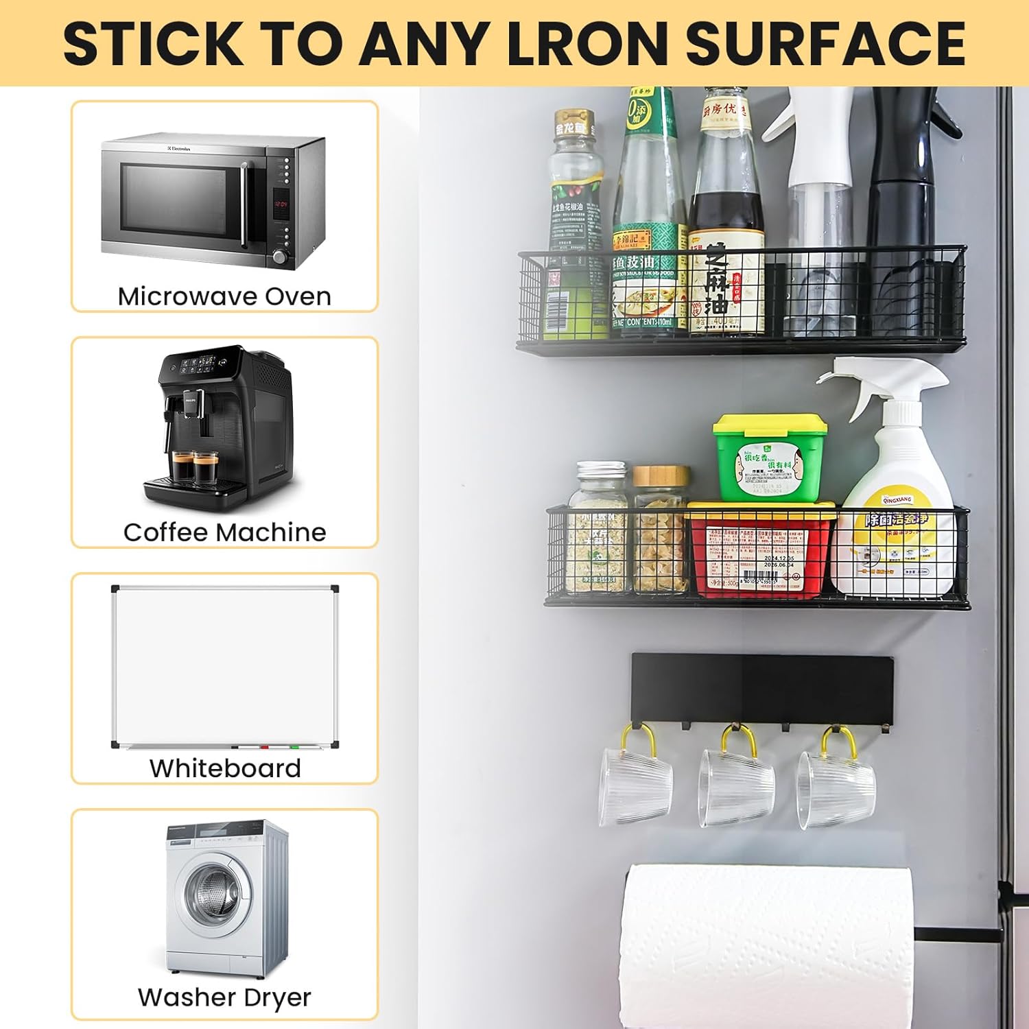• 【Powerful Magnetic Backing – No Drilling Required】Equipped with strong rubber magnets on the back, the rack attaches firmly to any metal surface such as refrigerators, washing machines, or cabinets. It stays securely in place even when fully loaded, offering hassle-free installation without holes or tools.