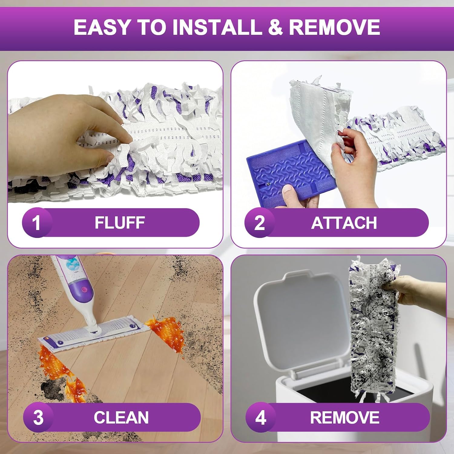 • 【 Easy to use 】 This disposable mop pad refills that is compatible with Swiffer power mops is not fluffy enough due to transportation compression. It only needs to be rubbed a few times by hand to restore the fluffiness. It is very easy to install and can be discarded directly after use, without worrying about future plot issues. It is very convenient.