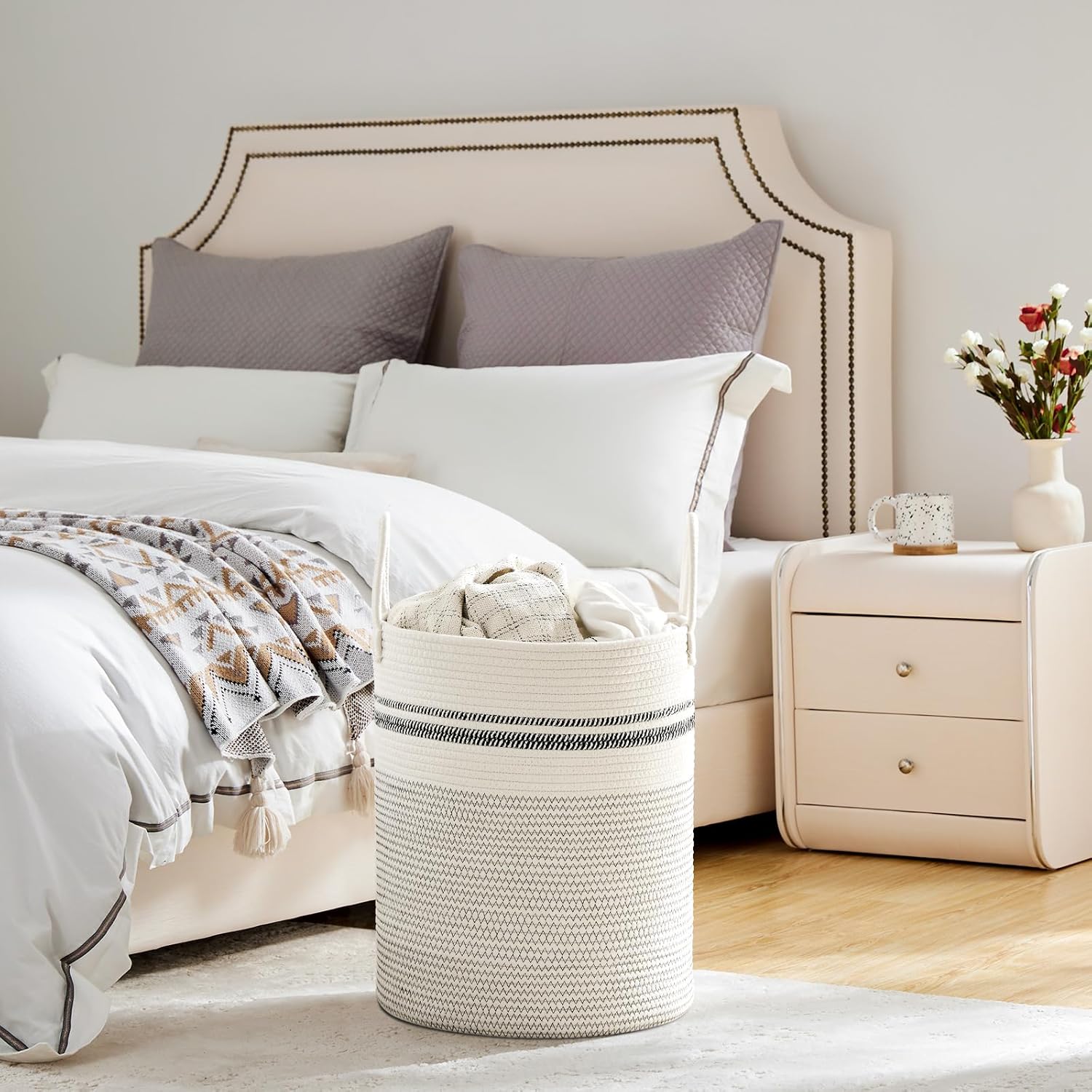• ❤【Restore Elegant Shape】 To improve shipping efficiency, foldable woven rope hampers are packed compactly. You can put some blankets or small quilts in it and give it some time to regain its shape. Iron is a great idea to remove the creases.