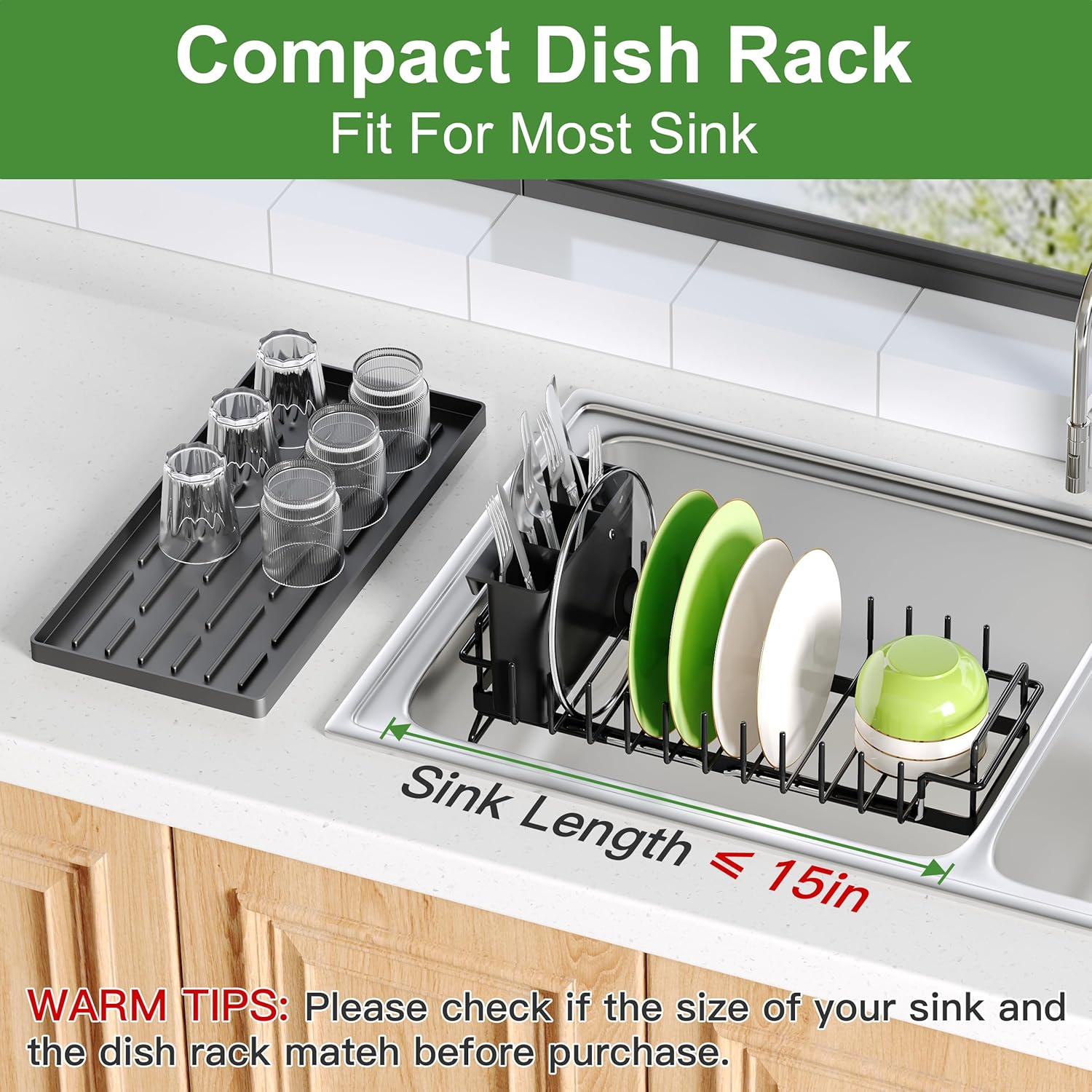 • 📏Small Space Kitchen Solution: This compact dish drying rack works over sinks, inside sink basins, or with tray on counter. Perfect small in sink dish drying rack that maximizes vertical space for precious kitchen areas.