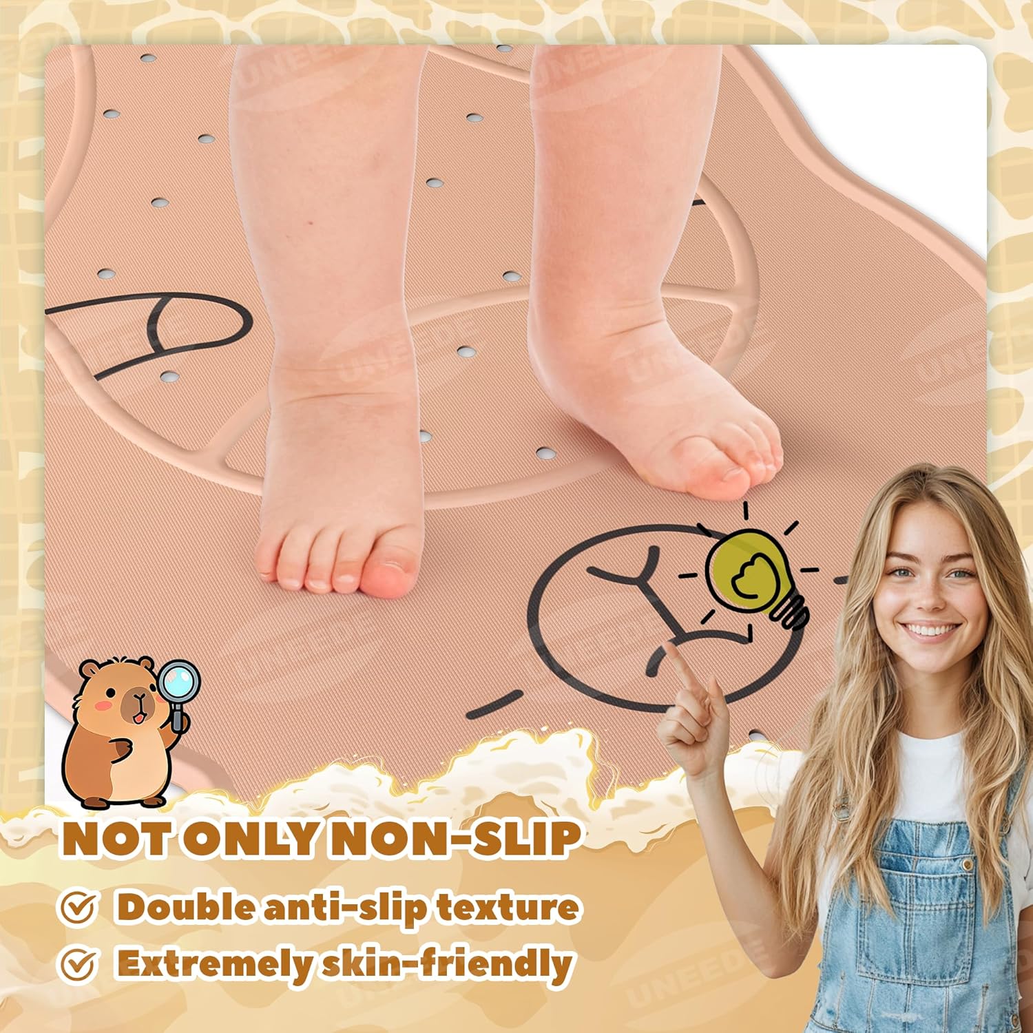 • 【Soft & Skin-Friendly - For a Better Bathing Experience】Our odor-free bathroom mat has a comfortable and soft texture. The cute capybara shape allows your baby to enjoy the bath time happily.