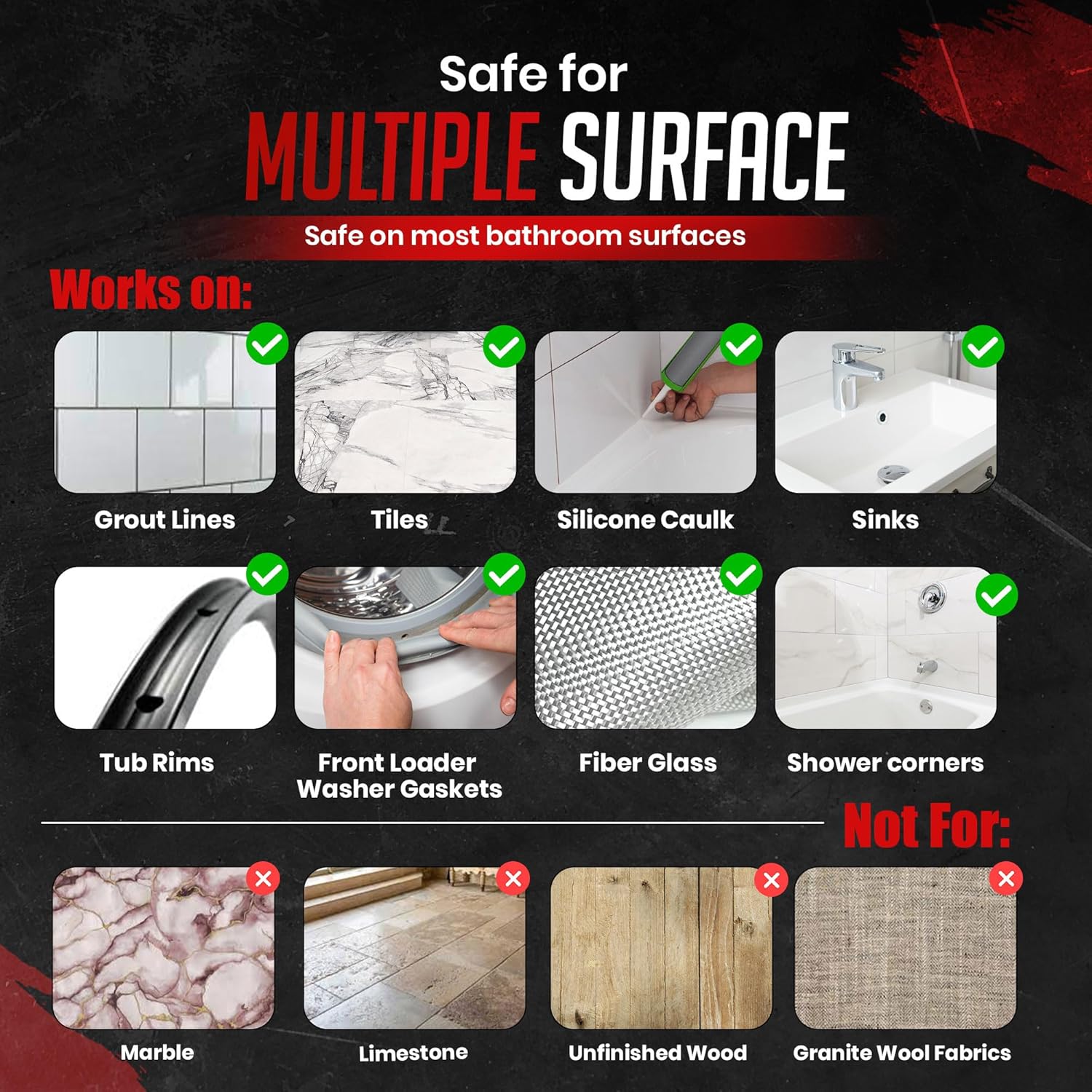 • Pro Strength – Our high-performance formula starts breaking down mold stains, grime, and lingering odors fast —perfect for high-traffic bathrooms, tubs, tile, and more.