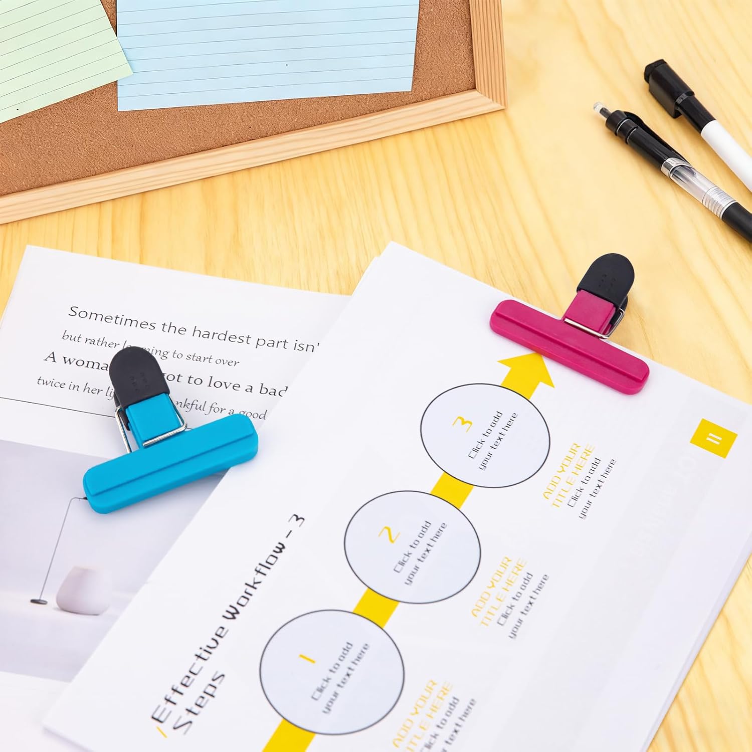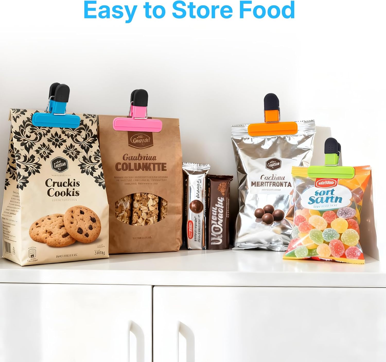 • 【Wide Application】 These chip bag clips are versatile—ideal for sealing chips, cereal, bread, frozen veggies, or snacks. They also work great for organizing documents, notes, and office supplies