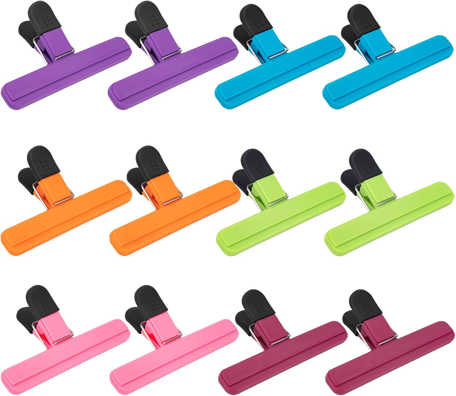 OWLKELA Chip Clip, 12 Pack Colors Wide Open Bag Clips for Food Storage, Heavy Duty Seal Grips Plastic Food Clips for Snack, Food Packages (6 inch x 3.4 inch)