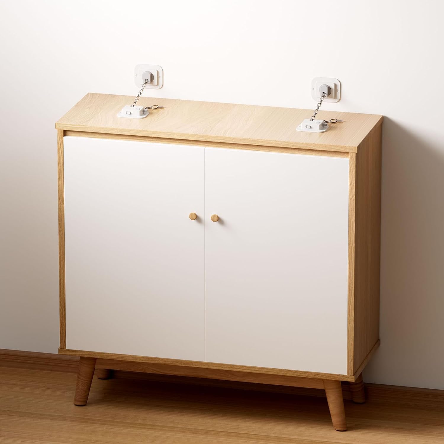 • COMPLETE KIT: Includes all necessary components - adhesive mounting plates, metal chains, and installation hardware for multiple furniture pieces
