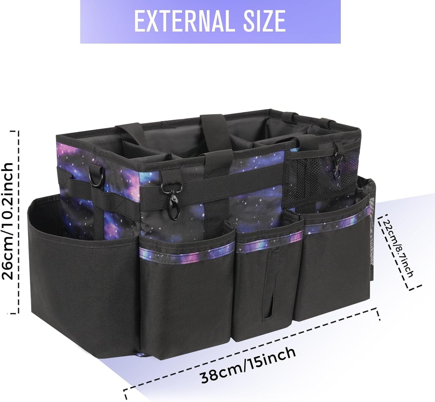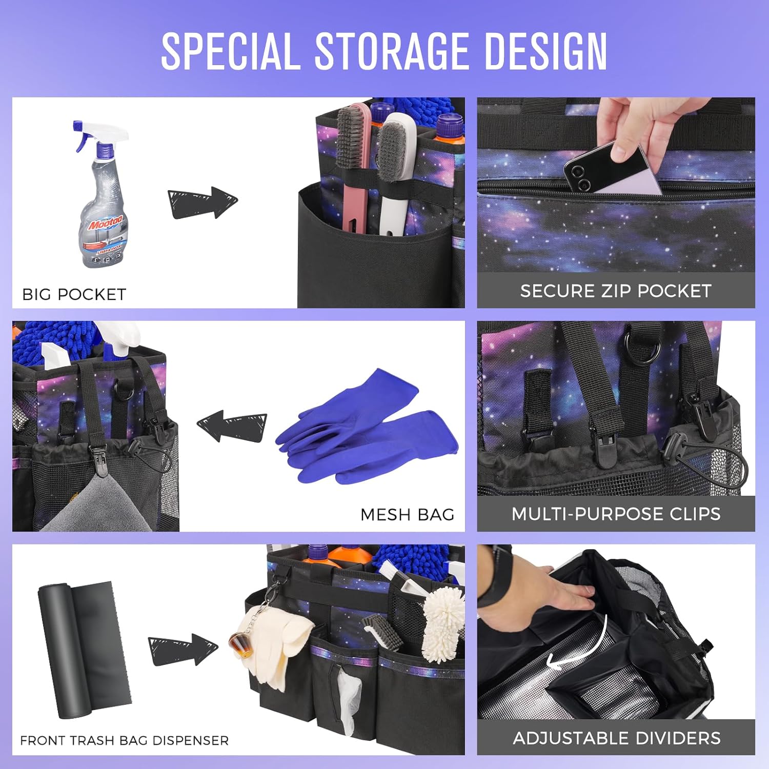 Wearable Cleaning Caddy, Cleaning Caddy Supplies Organizer with Handle & Shoulder Straps for Housekeepers, Under Sink & Car Cleaning Tool Organizers Bag with 4 Foldable Divider (StarrySky)
