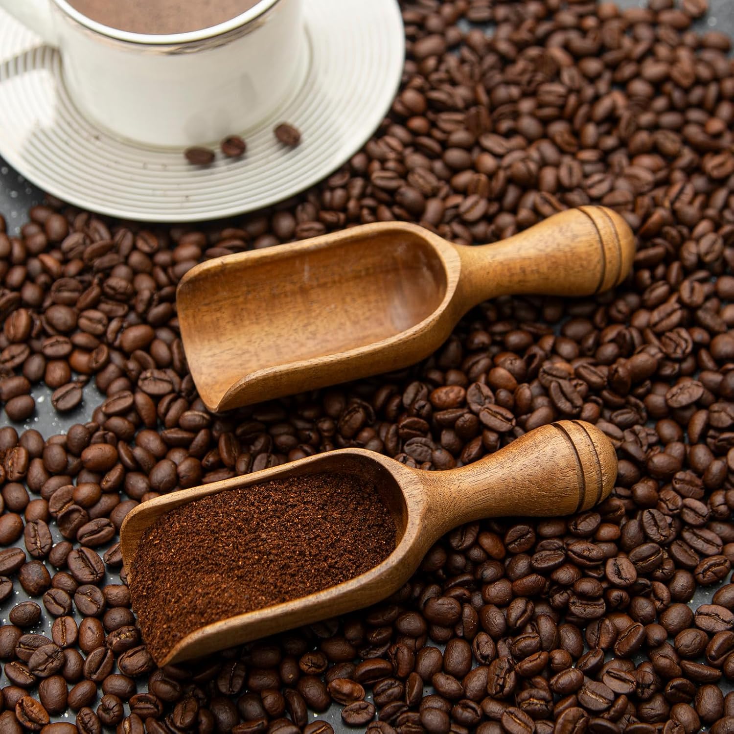 Big Coffee Scoop Shovel, 2pcs Wooden Scoop for Jars, Acacia Large Ground Coffee Scoop 5.9″ Measuring Spoons for Coffee Scoops, Tea, Powder- Multifunctional Kitchen Scoop for Bath Salts,Laundry