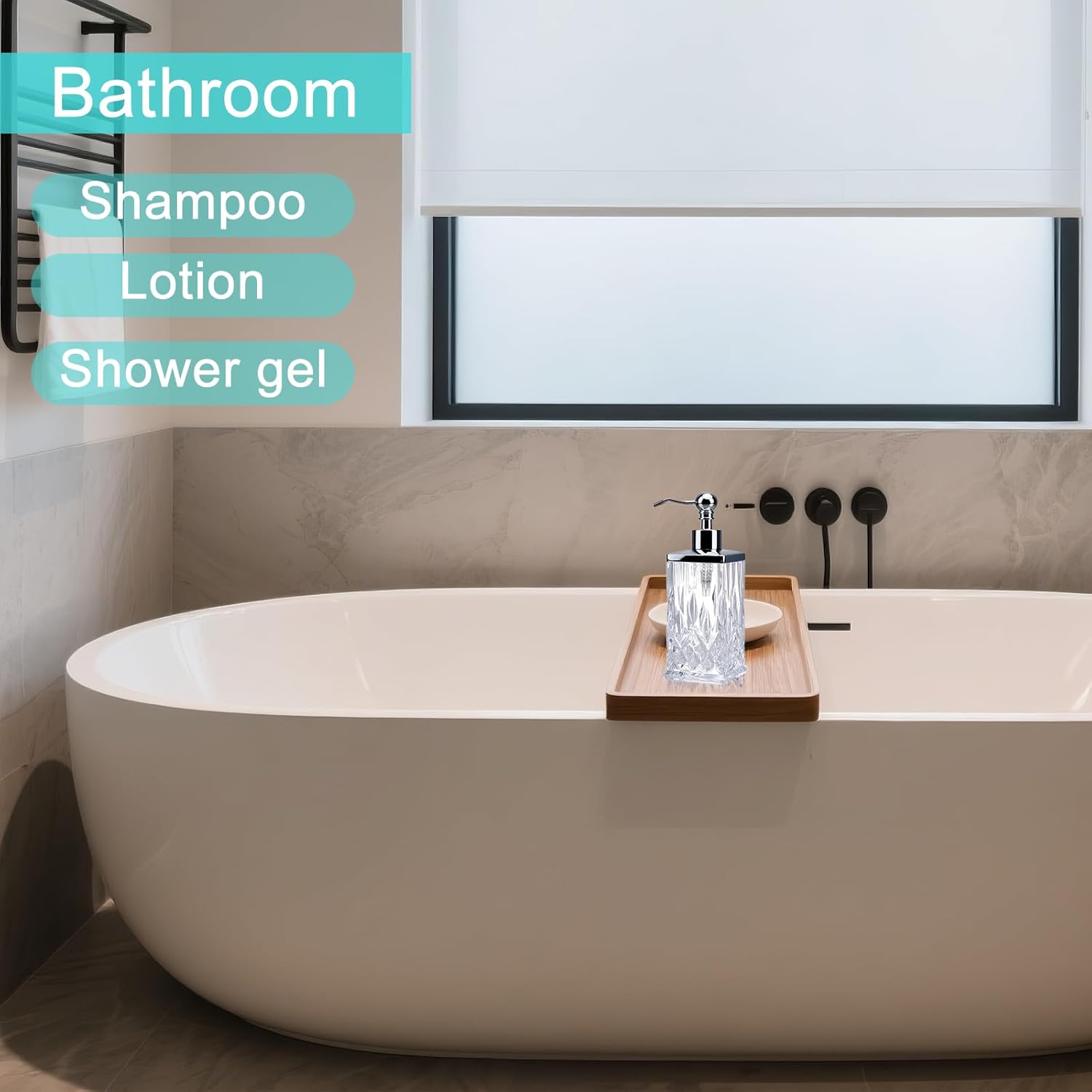 10Oz Clear Glass Soap Dispenser,Handcrafted Lead-Free Glass,Hand Sanitizer Dispenser with Silver Pump for Kitchen and Bathroom,Elegant Bathroom Decor(Square)