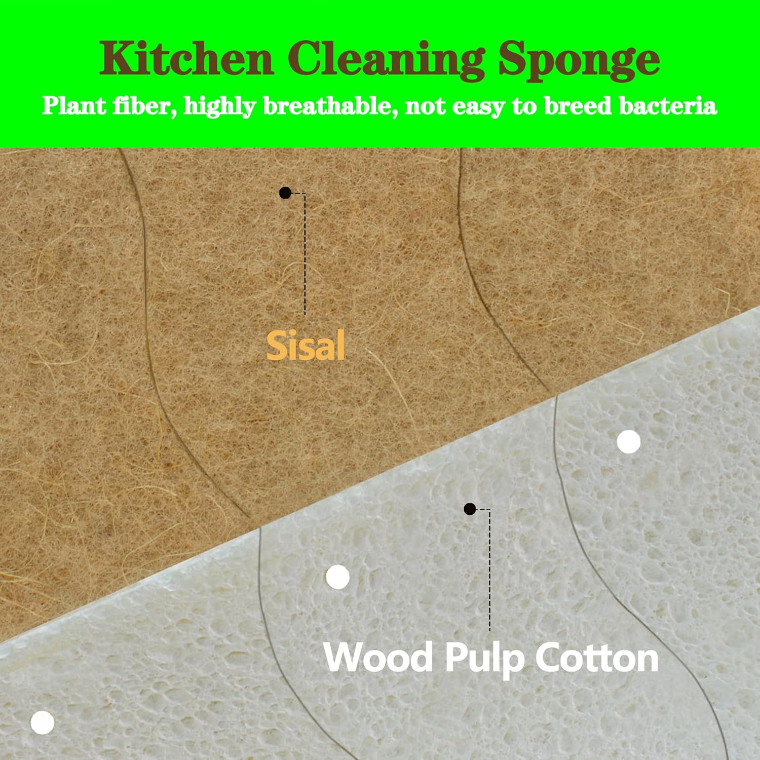 • Features a powerful sisal fiber side that effortlessly removes burnt-on food and tough stains, paired with a smooth wood pulp side that absorbs water and oil quickly