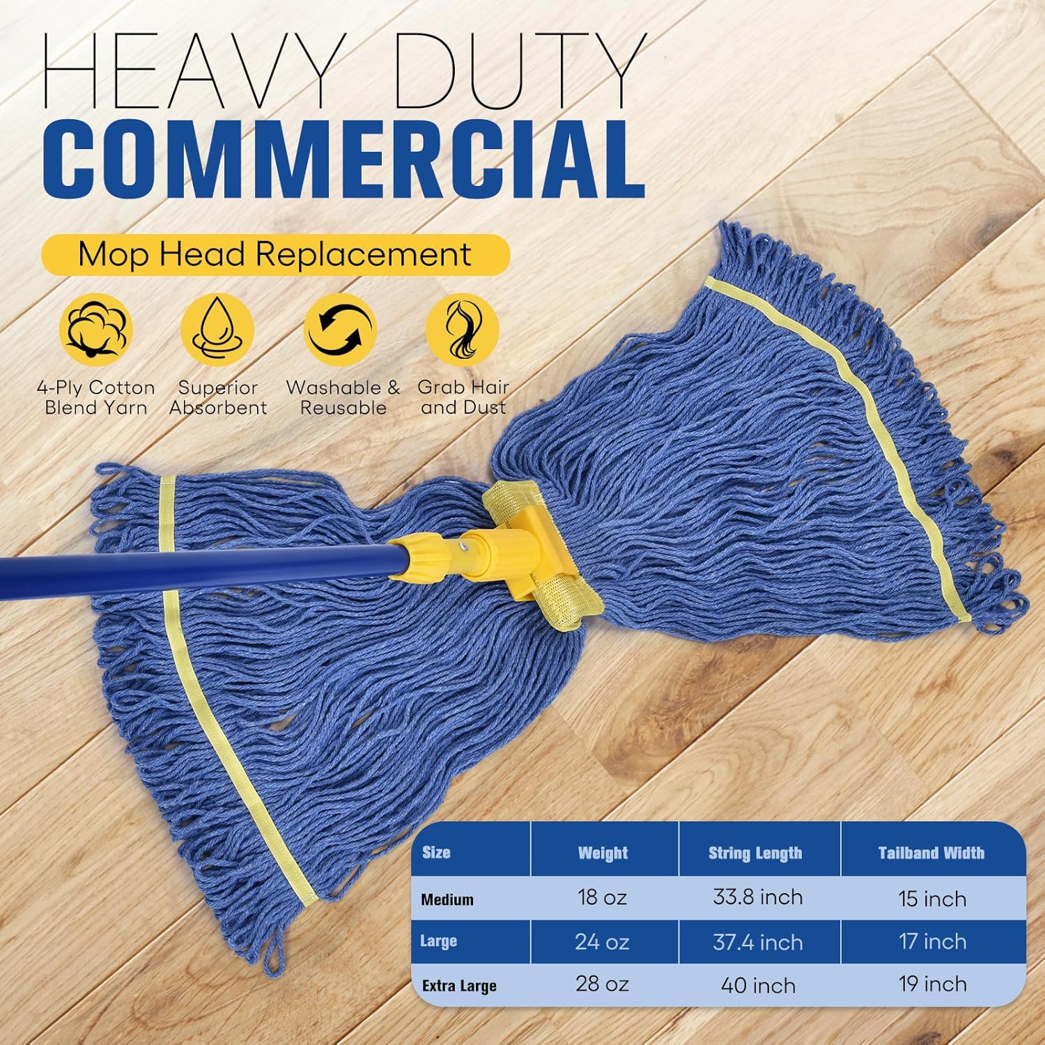 Matthew Cleaning Commercial Mop Head Replacement, 5 Inch Wide Headband, Looped End Cotton Blend String Wet Mops for Floor Cleaning, 24 oz Large, 1-Pack Blue