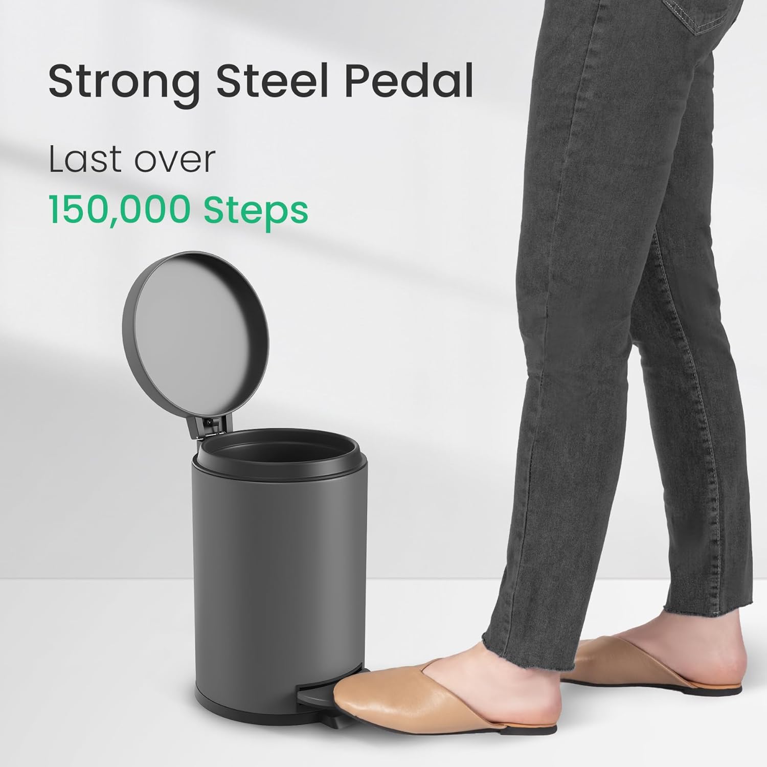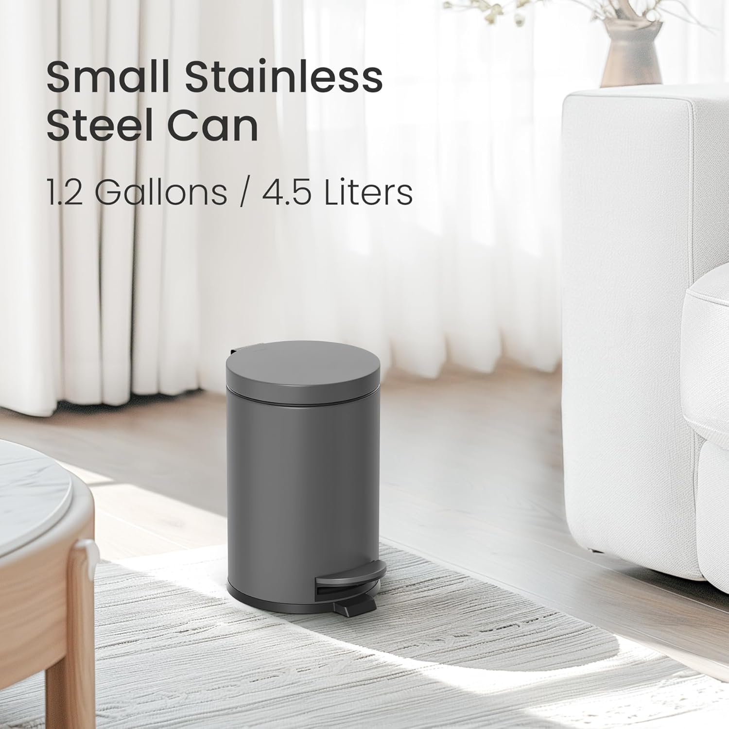 Cesun 1.2 Gallons Small Gray Trash Can, Bathroom Garbage Can with Lid and Foot Pedal, Mini Round Wastebasket for Bathroom, Bedroom, Office, 4.5 Liters / 1.2 Gallons, Gray