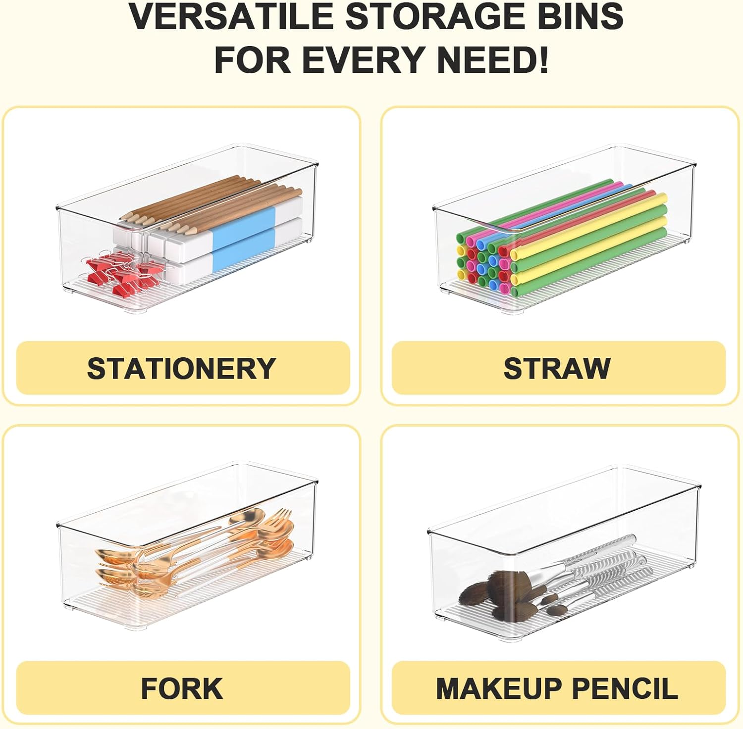 - 【CLEAR VIEW – EASY ACCESS & ORGANIZATION】 Fully transparent design allows quick visibility and access to contents, enhancing efficiency in fridge organization, pantry shelves, cabinets, and drawers. Keeps food, toiletries, or daily essentials neatly arranged and easy to find. Best choice for office organization, home storage and garage organization.