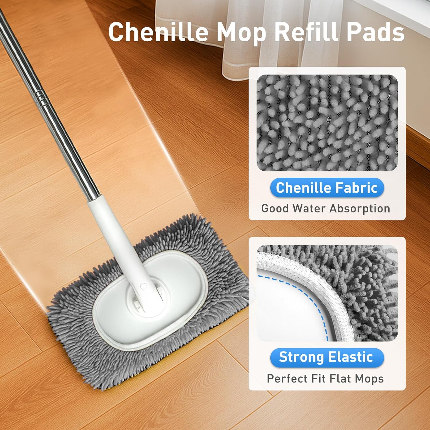 • REUSABLE MOP PADS: Tired of wasteful, flimsy mop pads? Discover our Chenille Mop Refill Pads. Whether you need them for wet mopping or dry sweeping, the reusable mop pads are the perfect tool for every cleaning job. (NOTE: Mop pole not included)