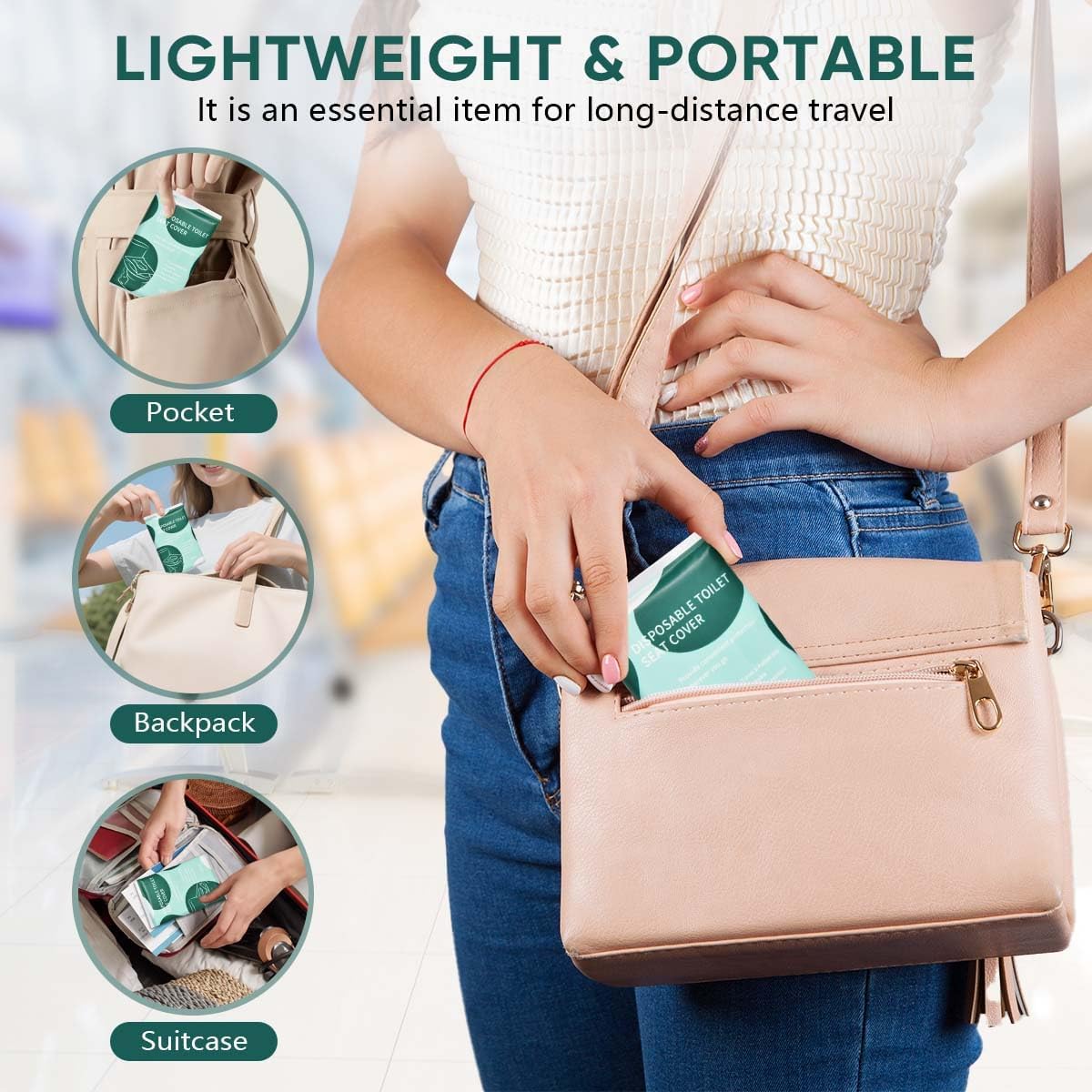 • Easy to Carry: Disposable flushable toilet seat cover is designed for mothers, travelers and commuters. Lightweight and portable, individually packaged, can be put into wallets, backpacks, tote bags, carry-on luggage, etc., a must-have item for long-distance travel, ensuring extreme hygiene during the journey