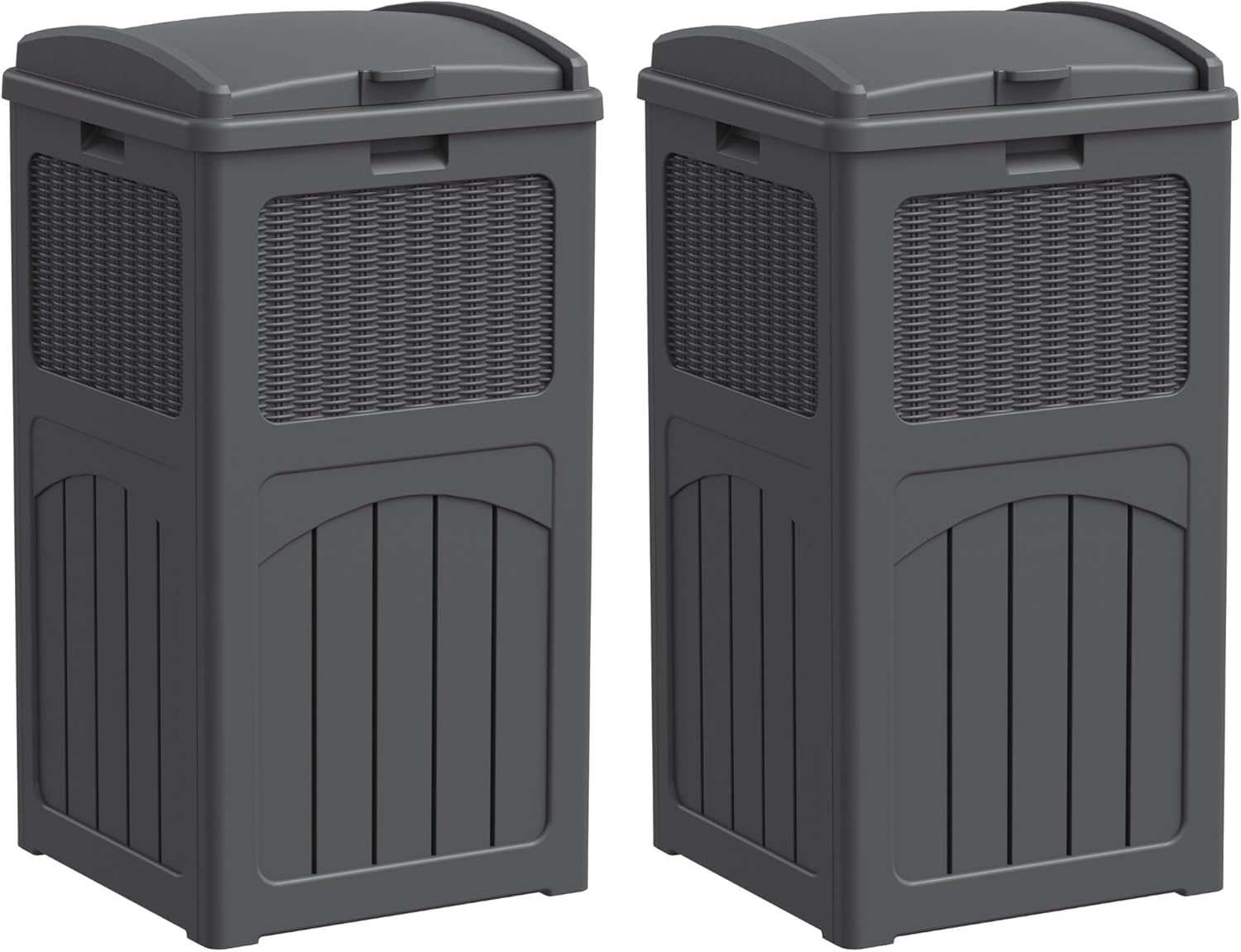 YESHOMY 2 Pack Outdoor Trash Can with Lid, Garbage Bins for Garden, Porch, Home and Kitchen, Gray
