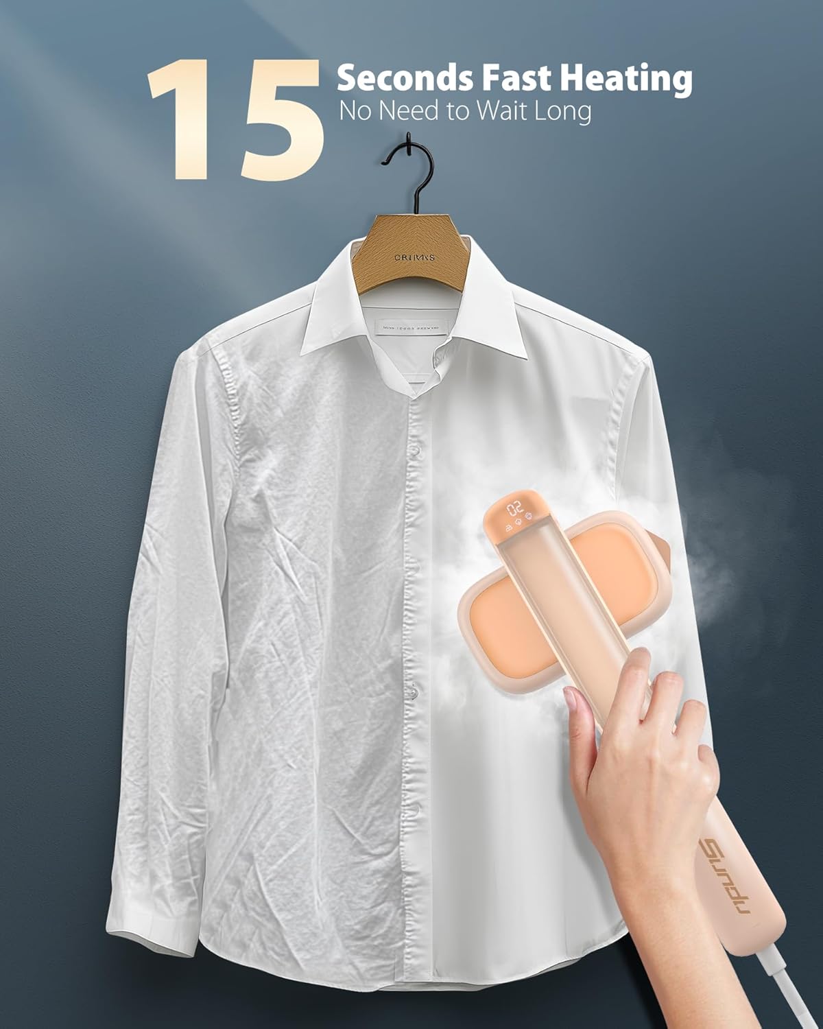 - 15-Second Instant Steam & 8-Min Continuous Power: Experience professional-grade wrinkle removal with 1300W dual-heat technology that generates ready steam in 15 seconds. The penetrating steam flow lasts 8 minutes - enough to refresh 3 full outfits or large drapes. Features a 6.8ft swivel cord for horizontal sofa steaming or vertical garment care. Outperforms standard irons with 2X faster de-wrinkling on cotton, denim, and wool blends.
