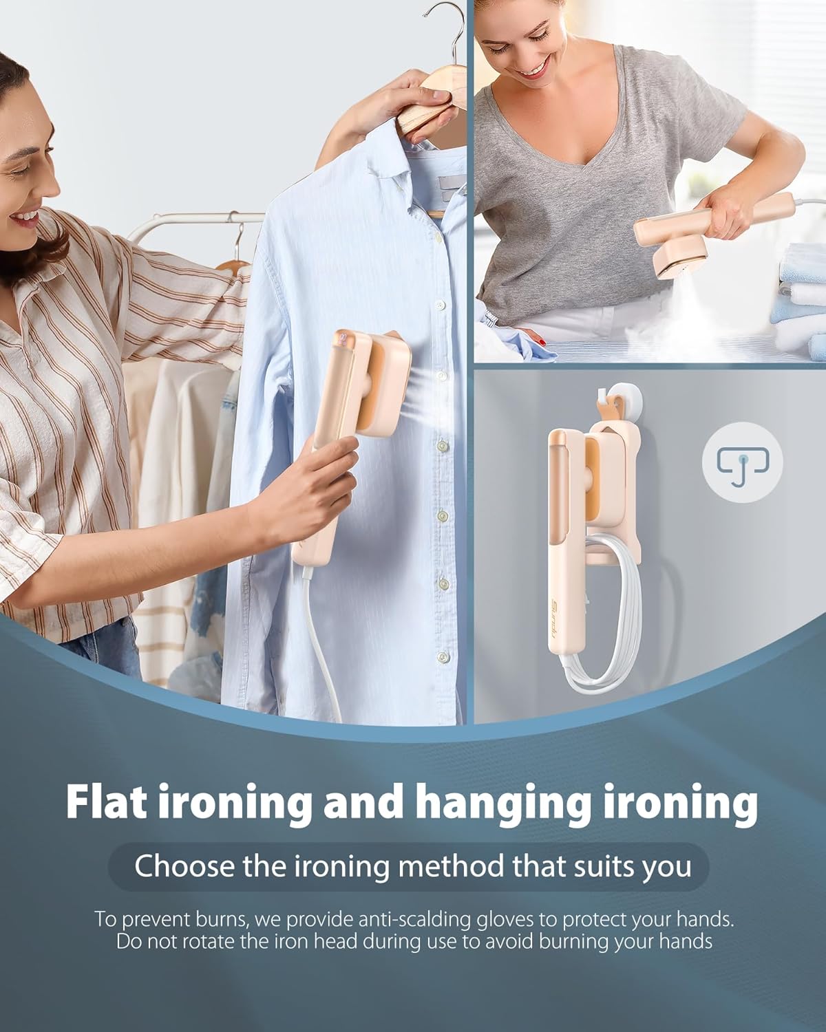 - Versatile Steaming & Ironing: Featuring a unique panel structure design, this portable mini steamer can be used for both steaming and ironing. The panel maintains a constant temperature between 320-356 Fahrenheit degrees, protecting your clothes' fabric and allowing for immediate use.