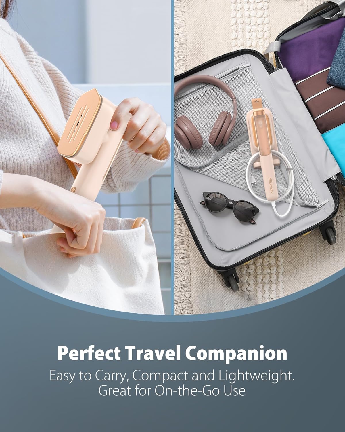 Smart Steam irons Handheld Steamer for Clothes – Global Voltage Adaptation, Palm-Sized & Lightweight (0.8lb), Dual Steam Modes, Easy Wrinkle Remover, Auto Shut-Off, for Travel & Home