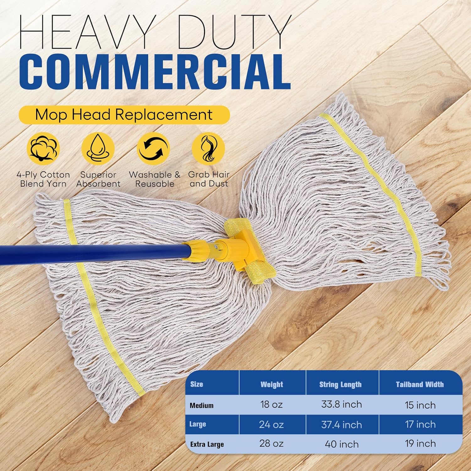 Matthew Cleaning Commercial Mop Head Replacement, 5 Inch Wide Headband, Looped End Cotton Blend String Wet Mops for Floor Cleaning, 24 oz Large, 6-Pack White