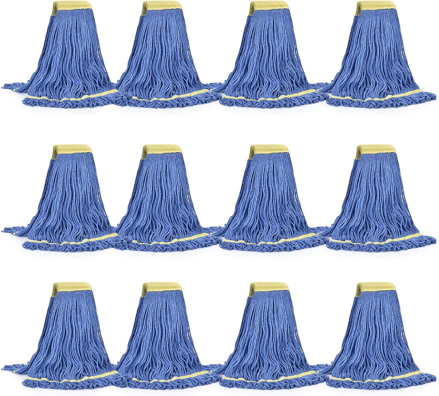 Matthew Cleaning Commercial Mop Head Replacement, 5 Inch Wide Headband, Looped End Cotton Blend String Wet Mops for Floor Cleaning, 24 oz Large, Case Pack 12 Pcs Blue