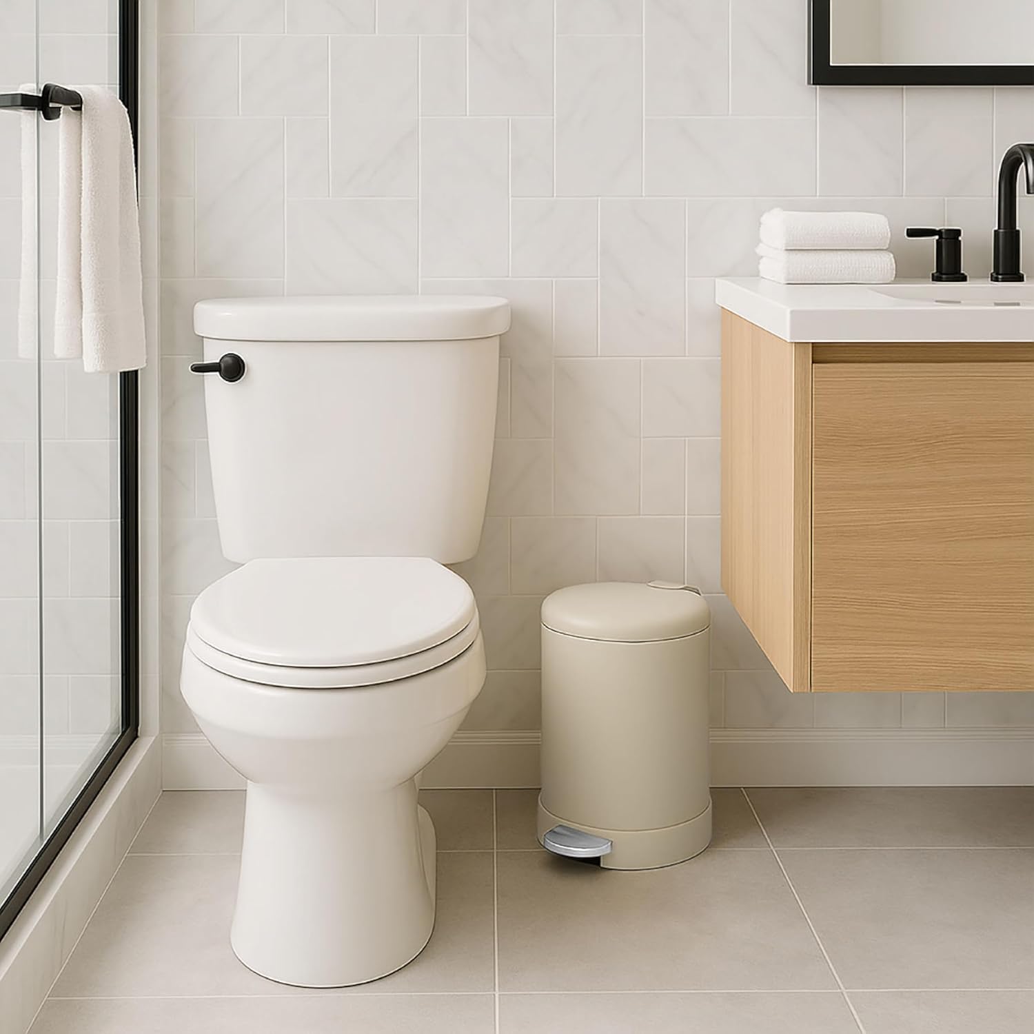 • SMALL TRASH CAN WITH LID - The 1.2-gallon capacity makes this compact trash can the perfect size for rooms with limited space. Makes a great office trash can for near desk, lidded bathroom wastebasket, and tiny step can for apartment kitchens.