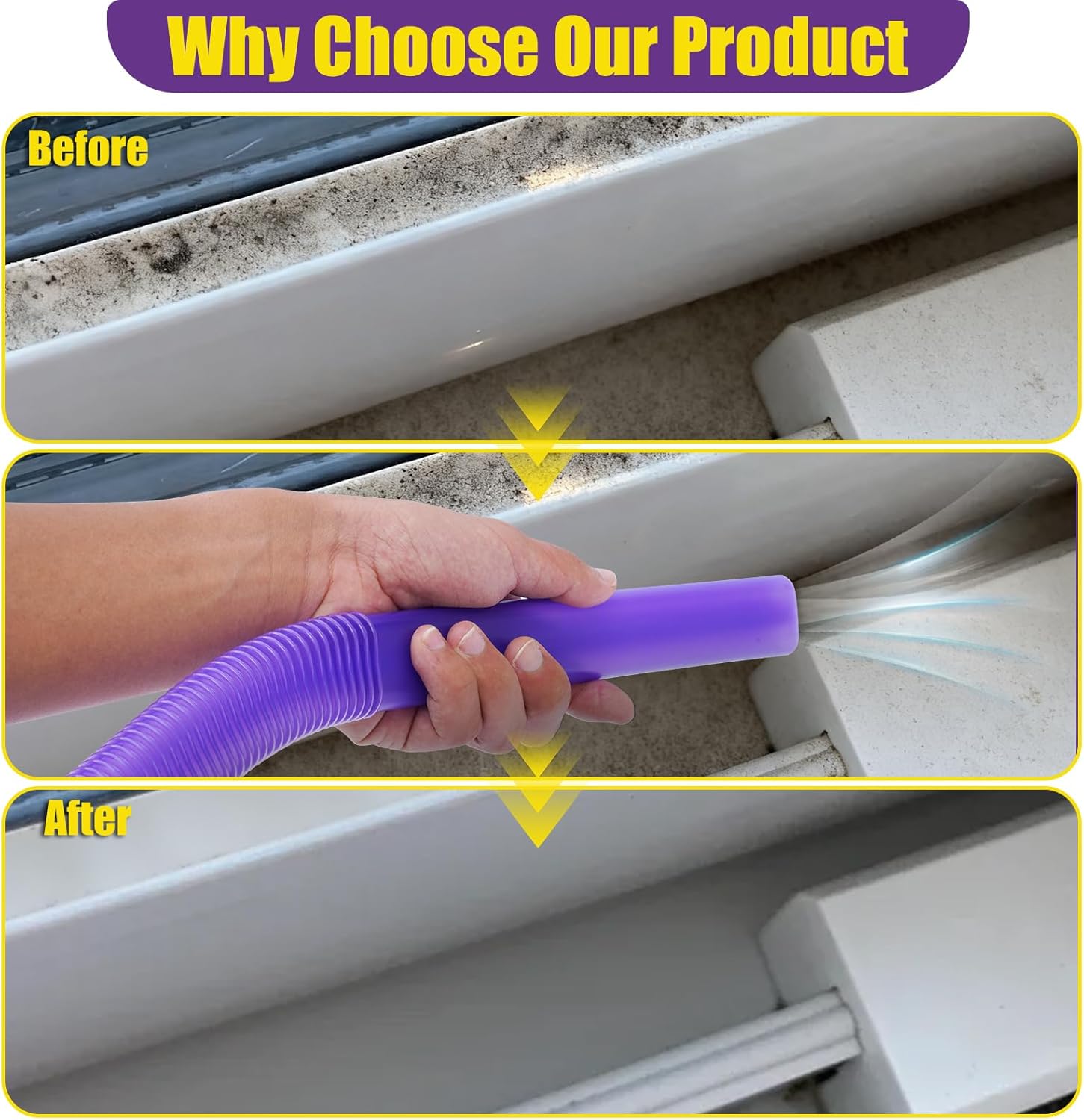 • Highly Flexible Hose for Easy Access: The high-elasticity flexible hose can be freely bent to easily reach narrow and hard-to-access areas, while maintaining strong suction for effective dust and debris removal inside ducts and under furniture.