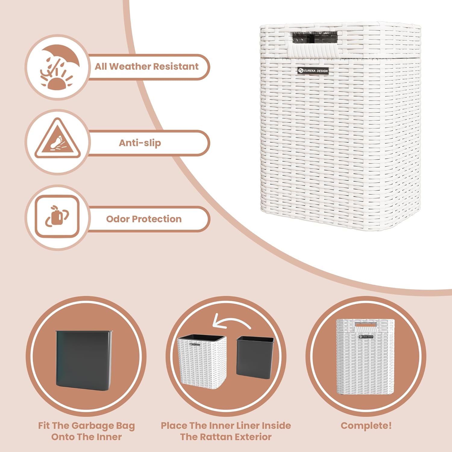 • 【Durable Material & Structure】 Made from high-end thick PE rattan and all-Iron structure, this waste basket is weather-resistant and last for years.