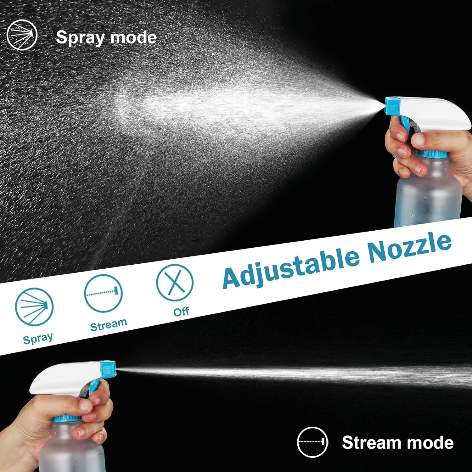 • ADJUSTABLE NOZZLE SPRAY BOTTLE: With 3 way adjustments. Easily switch between a fine mist (perfect for hairstyling or delicate plants) and a solid stream (for heavy-duty cleaning). The extended suction tube ensures every drop is used, making it a versatile water spray bottle for multiple needs.