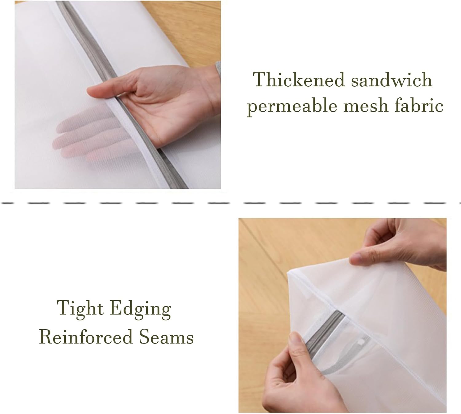 - Package Contents:Set of 3 mesh laundry bags for washing machine.(Includes: 1 Large: 19.6 x 23.6 Inches, 1 Medium: 15.7 x 19.6 Inches, 1 Small: 11.8 × 15.7 Inches). Different sizes suit various types of clothing for a more efficient cleaning experience.