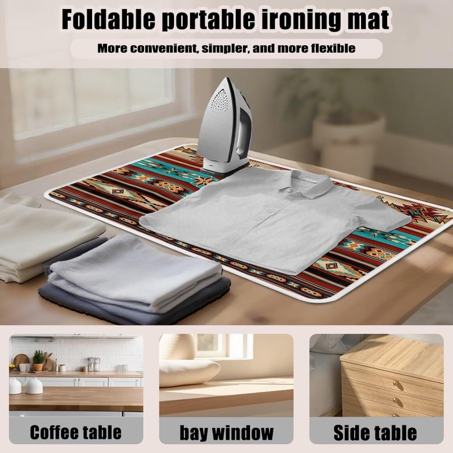 • 【Foldable】: Say goodbye to bulky ironing boards! This lightweight mat folds flat to the size of a magazine, making it ideal for studio apartments, dorm rooms, RVs, or tiny homes. Use it on any sturdy surface—kitchen tables, dressers, or even the bed—and store it in a closet, drawer, or under the bed when not in use