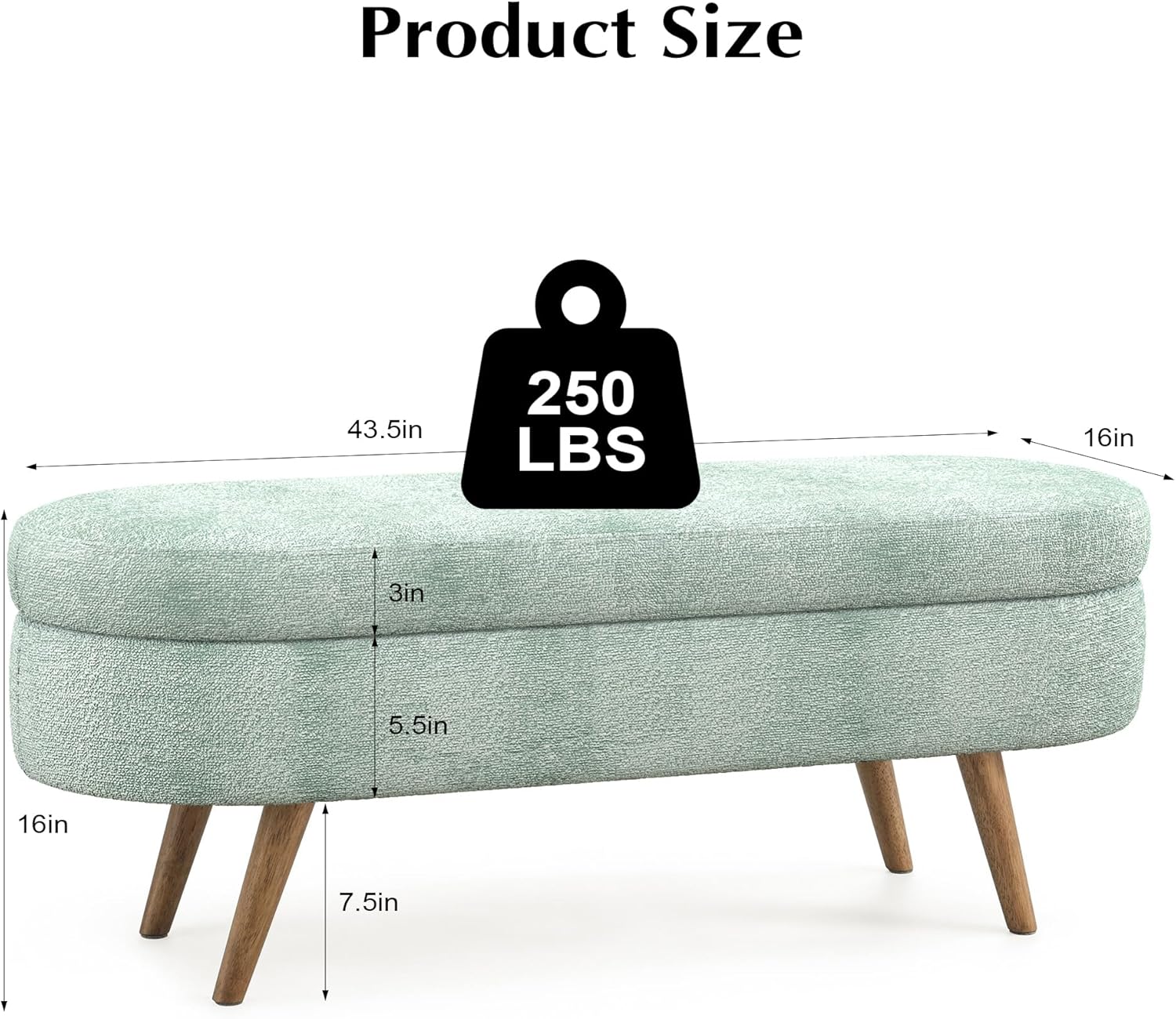 • Size : 16"D x 43.5"W x 16"H