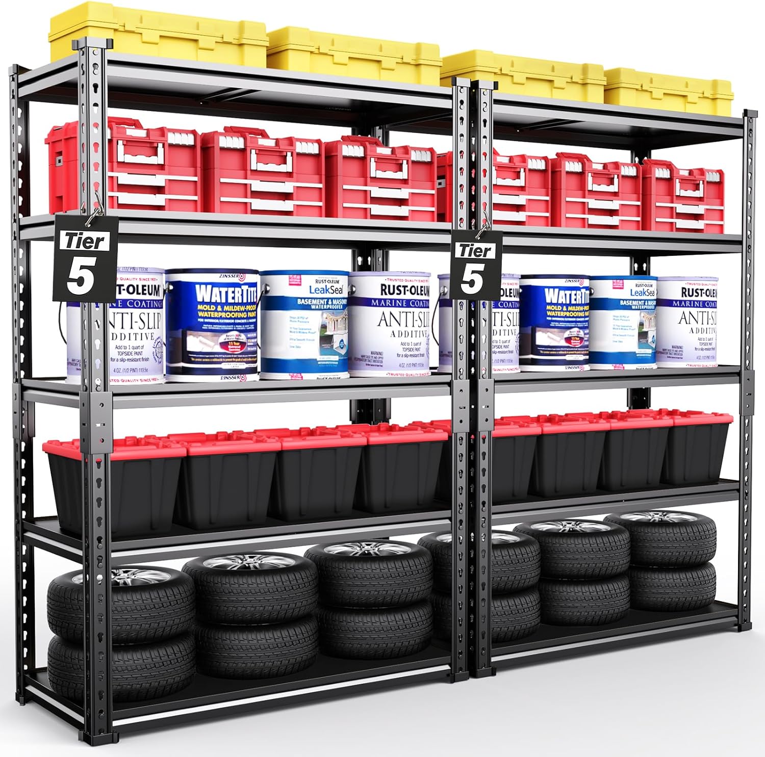 - 【Versatile Storage Shelves for Any Space】The perfect size for endless uses! These metal shelving units are ideal for your garage, pantry, closet, kitchen, basement, office, warehouse, or even retail. This 5-tier storage rack expands your space significantly, keeping your home or business clean and organized – the ultimate shelves organizer solution.