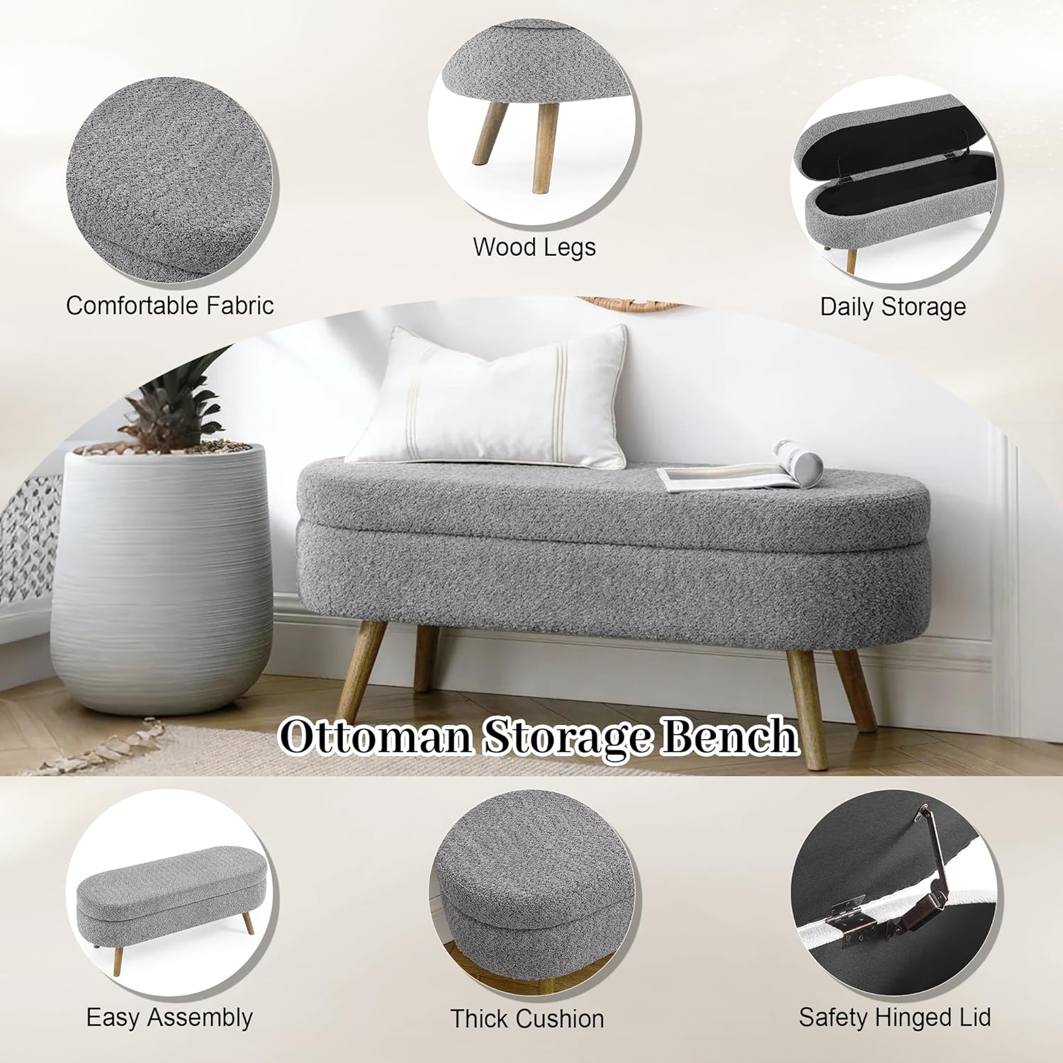 - [Easy Assembly Process]Storage bench for bedroom with clear instructions and all necessary parts—simply attach the rubber wood legs. The bedroom bench with storage no complex tools needed, allowing quick setup that gets the bench ready for use in minutes.