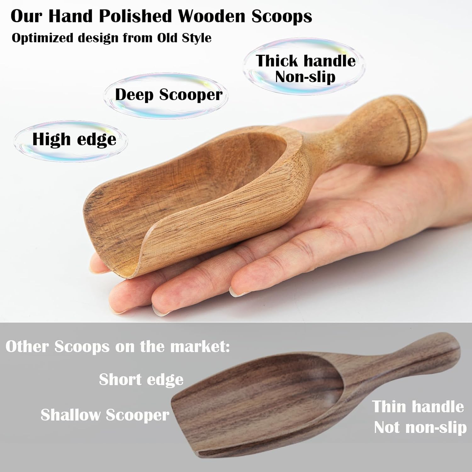 • 【MULTI-PURPOSE SCOOPS】 These wood scoops perfect for serving, measuring, and transferring dry ingredients like abundant coffee beans, bath salt, spices, grains, and more. Great for Kitchen and laundry room.